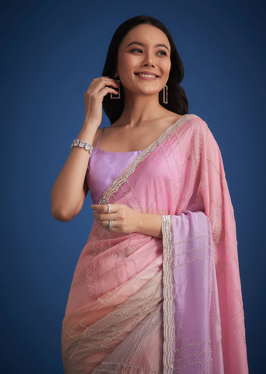 Lavender Purple Ombre Sequins Saree With An Embellished Border