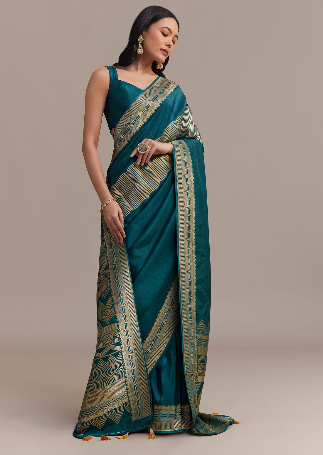 Peacock Blue Dola Silk Brocade Saree With Gotapatti Border