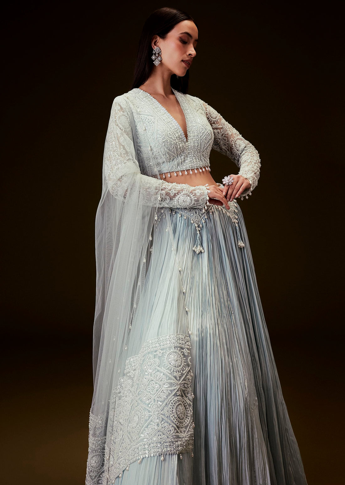 Sky Blue Crepe Sequence Lehenga With Full Sleeve Blouse