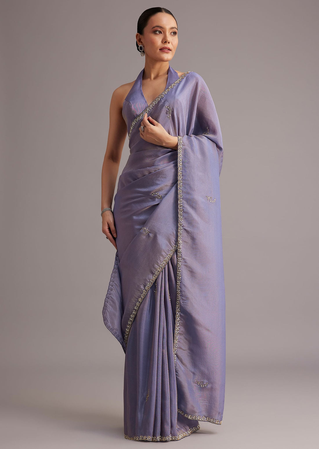 Violet Tissue Silk Saree With Cutdana And Sequin Embroidered Border