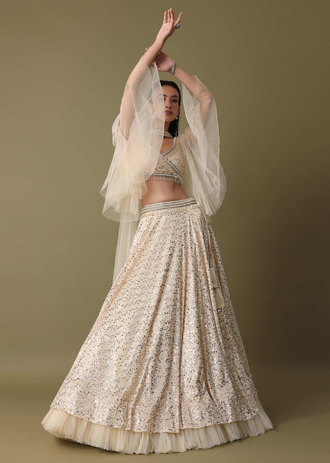 White Gotta Work Choli With Banarasi Weave Lehenga
