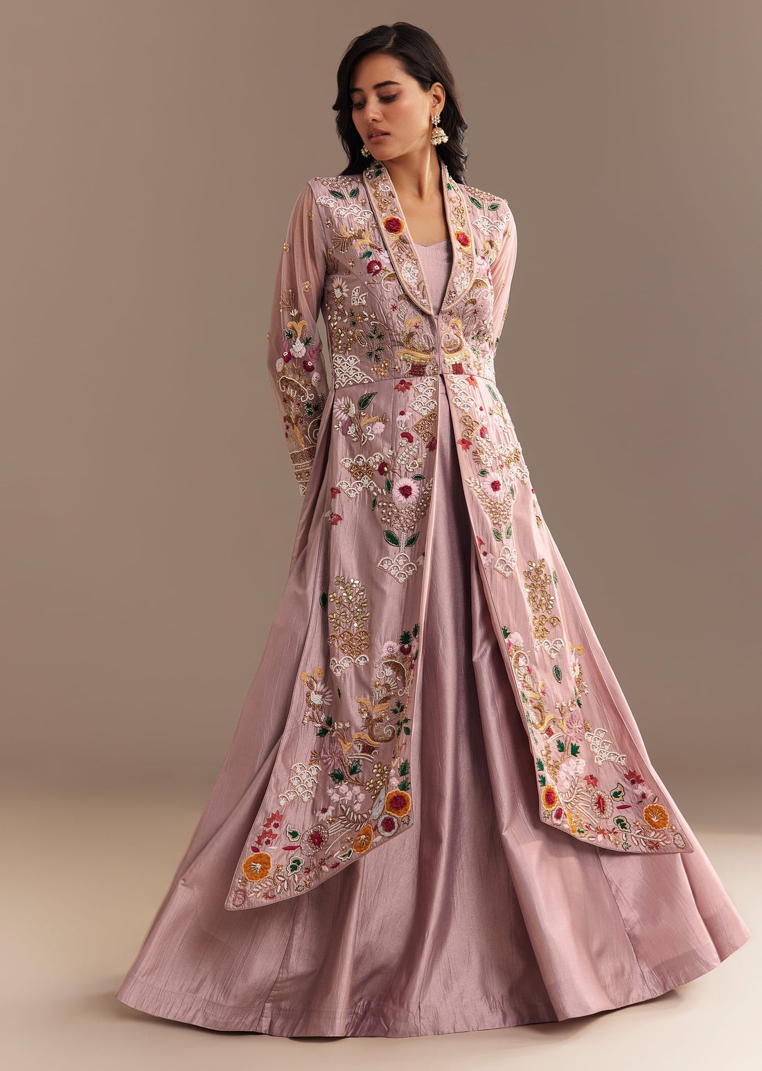 Lavender Zardosi Embroidered Jacket Lehenga Set