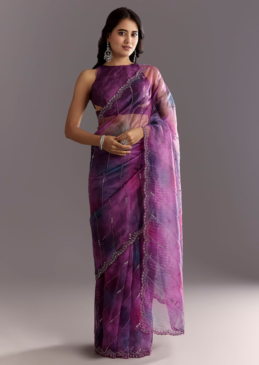 Plum Purple Shaded Organza Saree With Cutdana And Sequin Embroidery