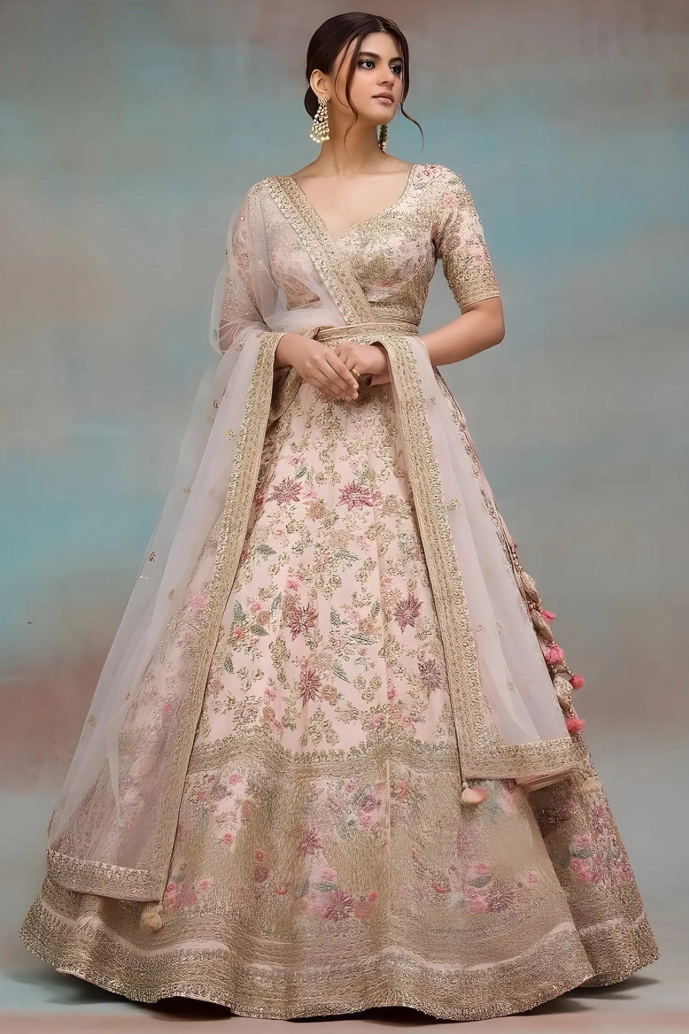 Achieving the perfect fit for your bridal outfit is a top priority. It’s important to take accurate measurements of your bust, waist, hips, and length according to your requirements. We also offer virtual consultations with our professional stylists, who guide you in selecting the right size and ensure your lehenga or bridal gown fits flawlessly. These sessions make the process stress-free and confidence-boosting, so you can feel your best on your special day..