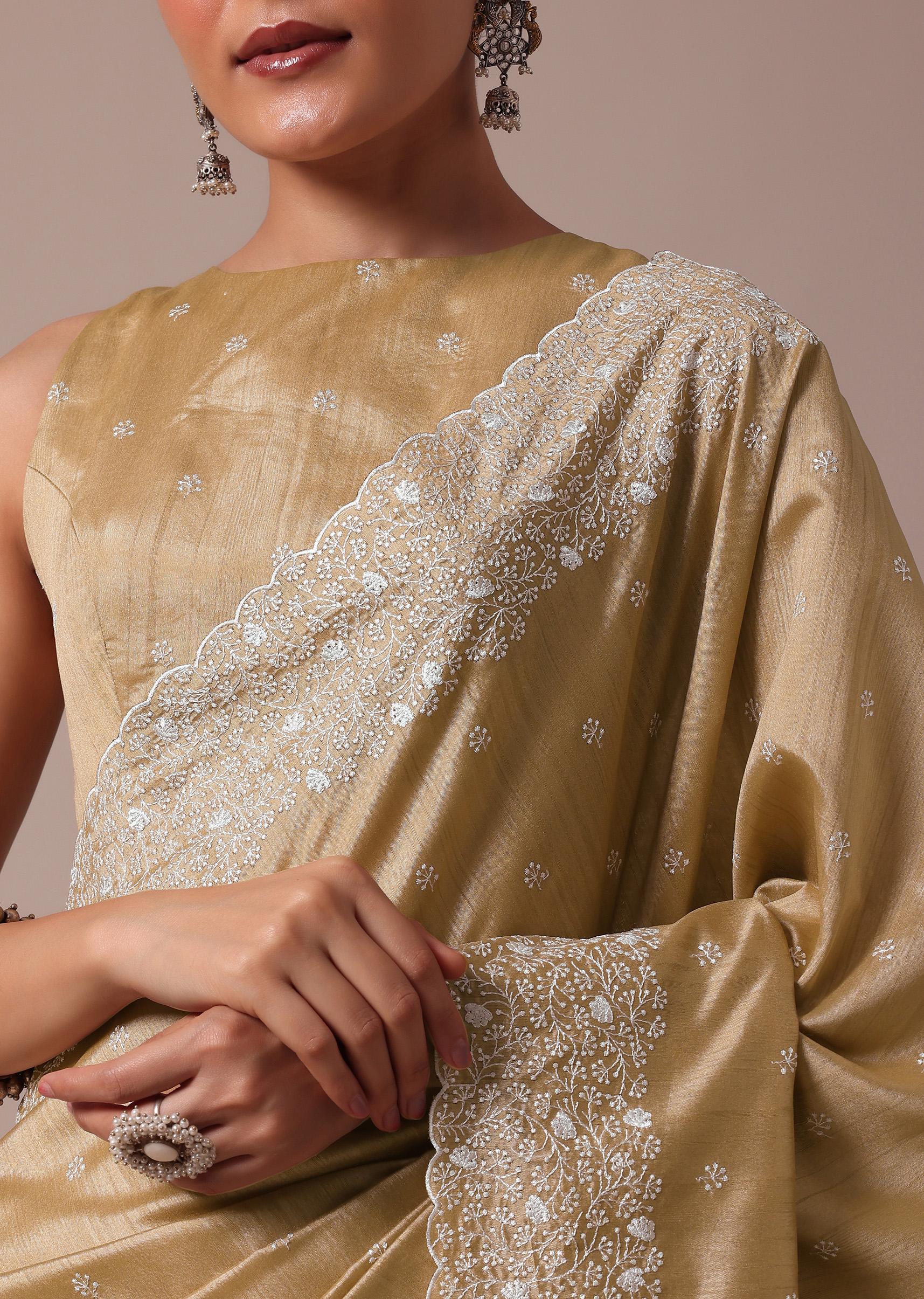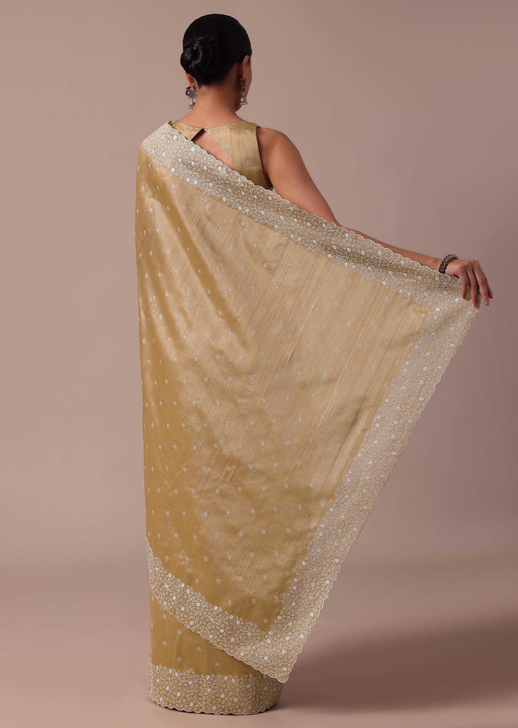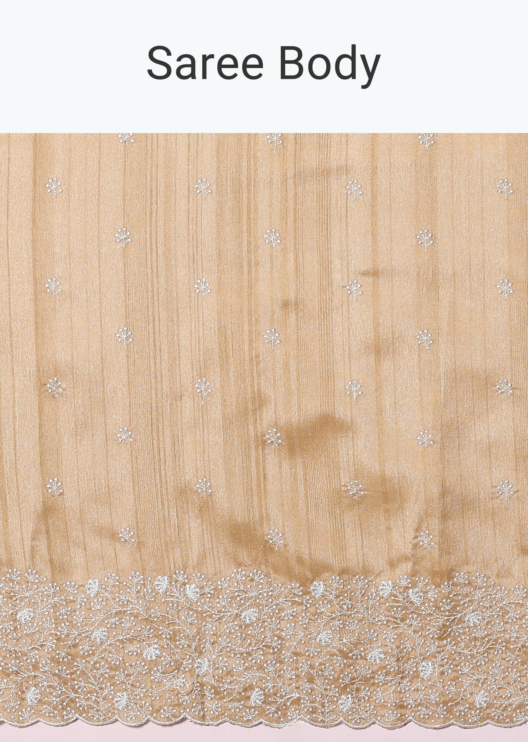 Lightweight chinon drapes easily and the finished border adds enough weight to keep the pallu in place.