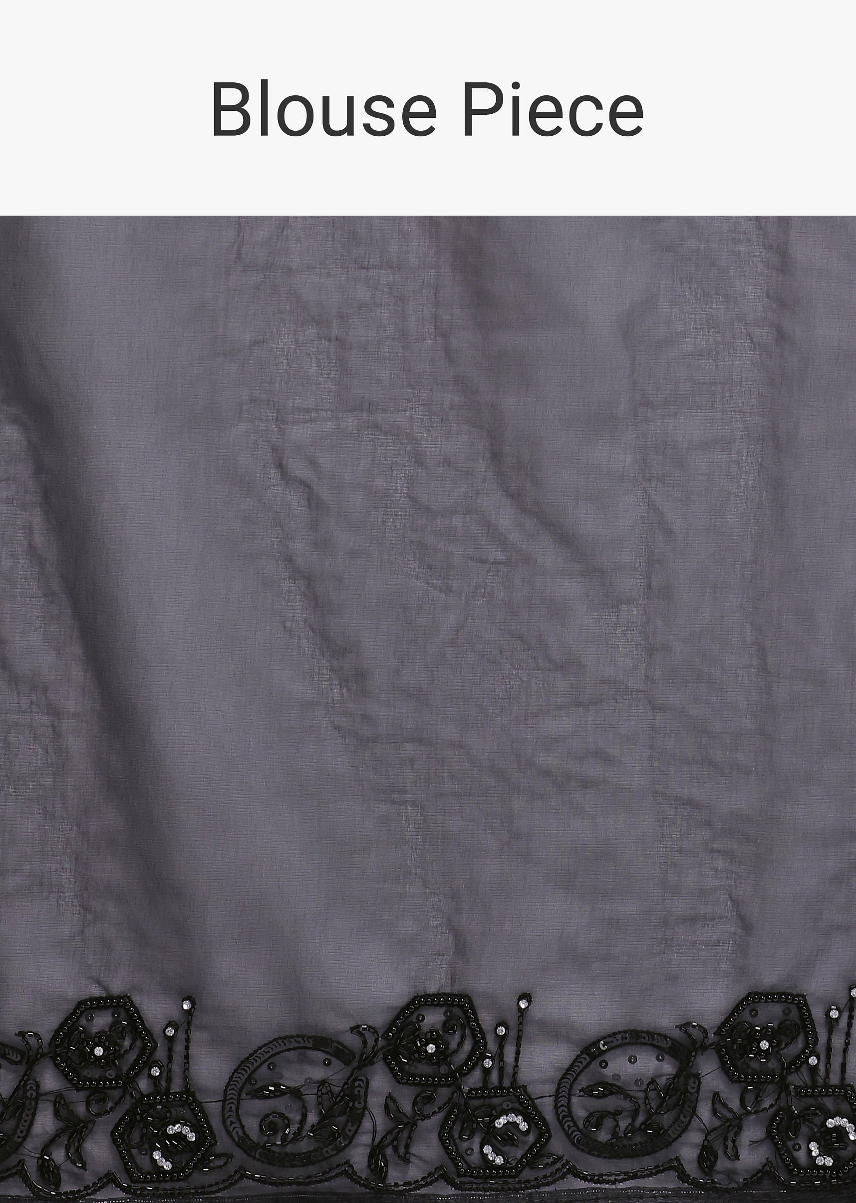 - Fabricated from celestial organza fabric and bedecked with a mesmerizing array of cutdana and sequins, it unveils a tapestry of sophistication.