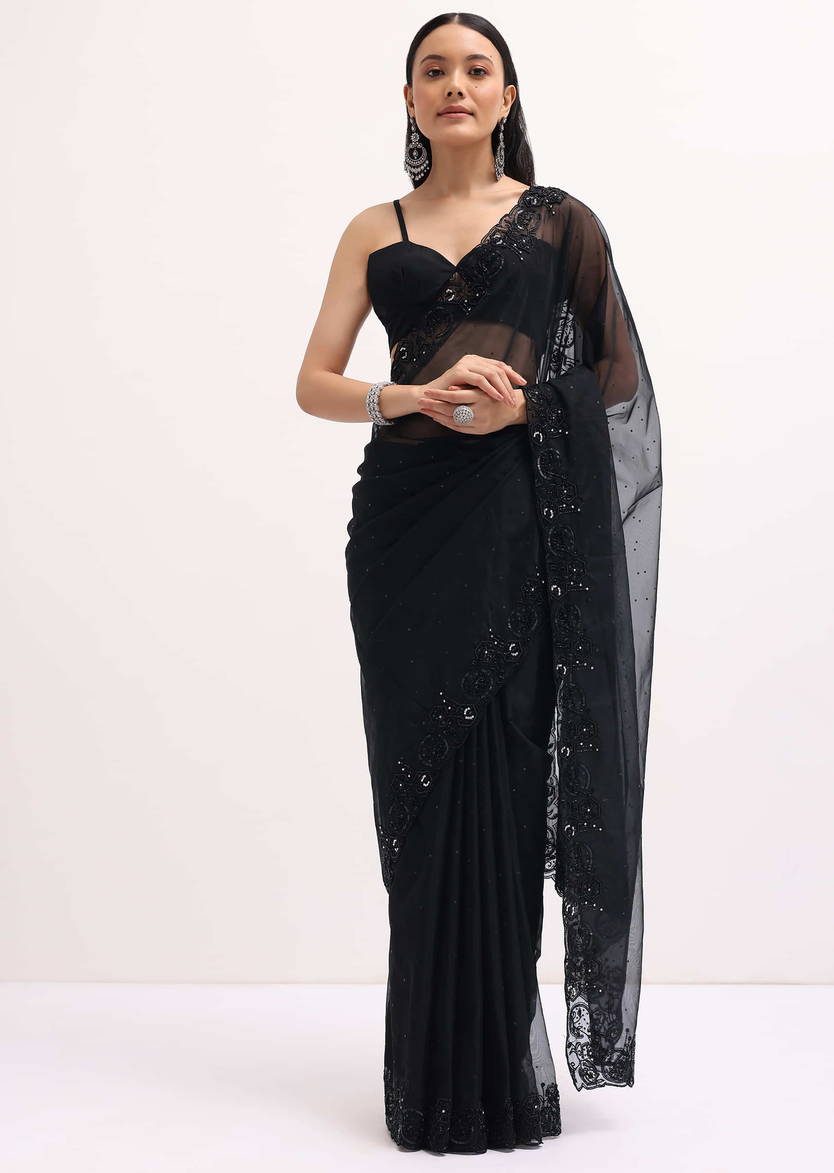 - Immerse yourself in the spellbinding allure of our black saree, a testament to elegance and grandeur tailored for moments of jubilation and wedding bliss.