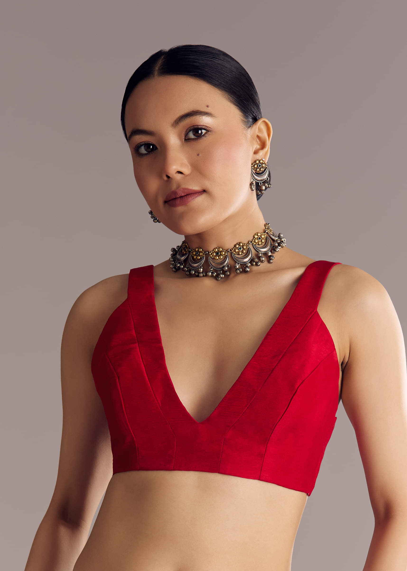 Pair with antique-finish jhumkas, a sleek bun and gold bangles; carry a potli to echo the gota.