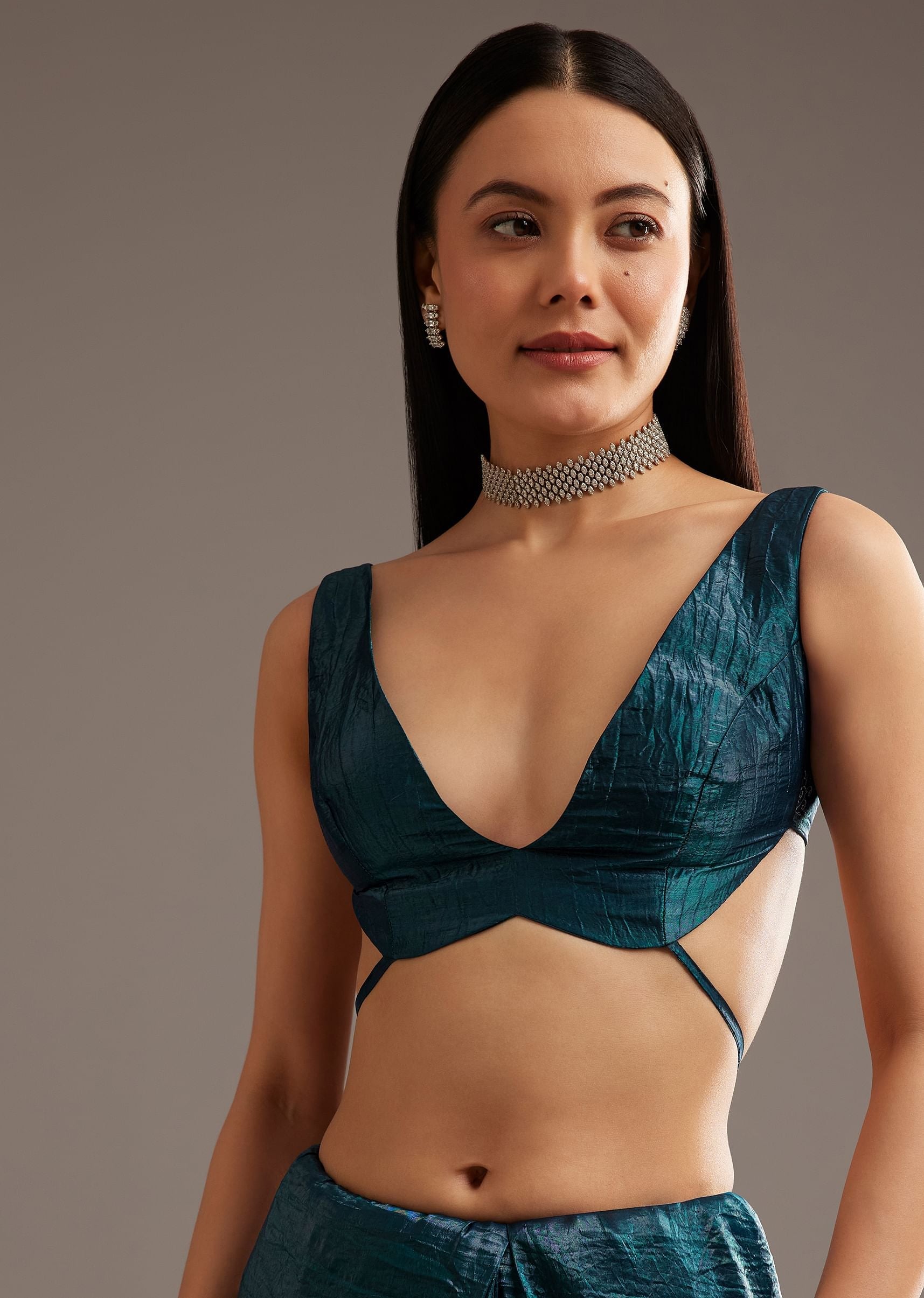 Blue Crushed Tissue Silk Saree With Cutdana Scallop Border