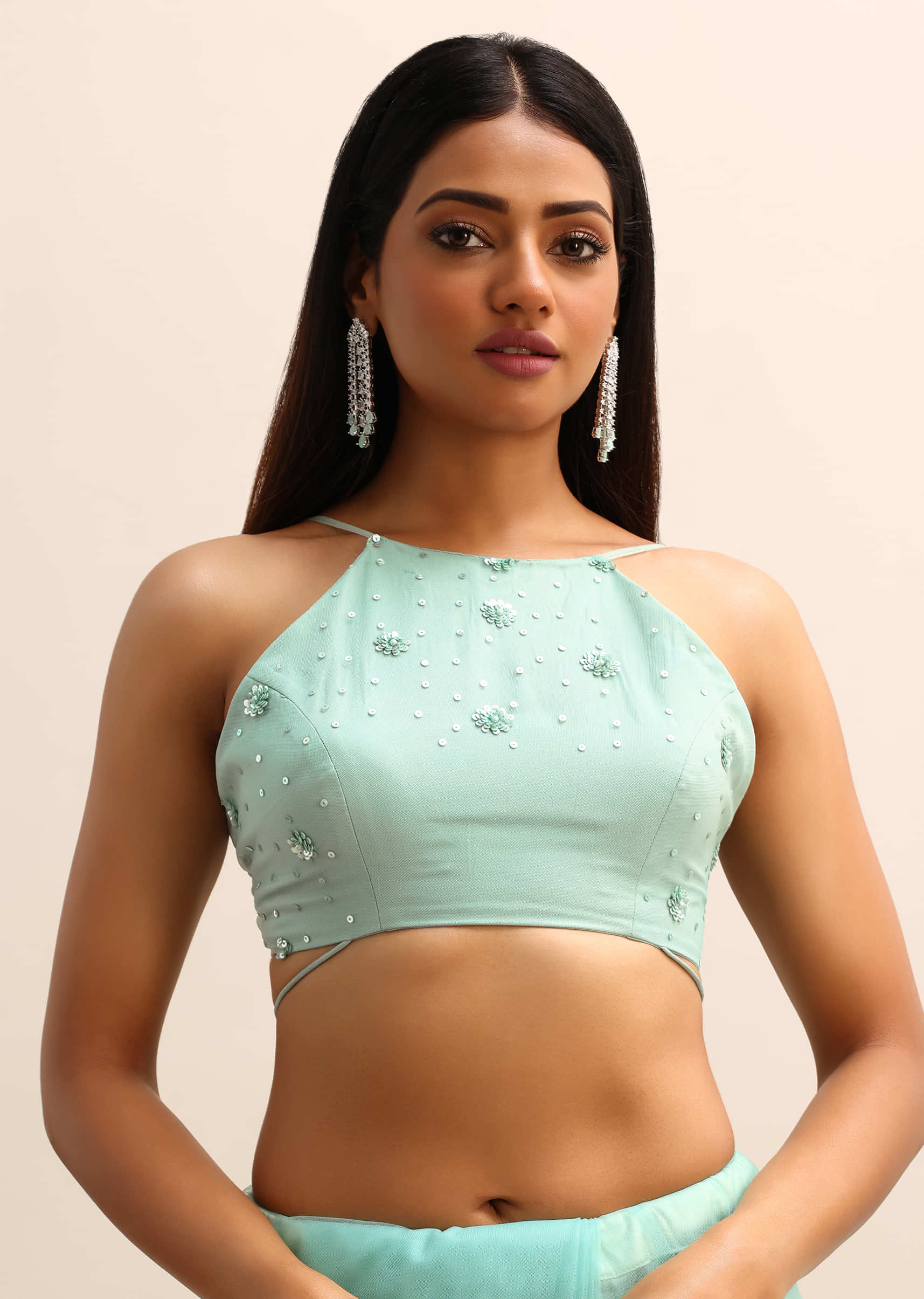 - The unstitched blouse allows for a touch of personalization creating an ensemble as unique and captivating as you are.