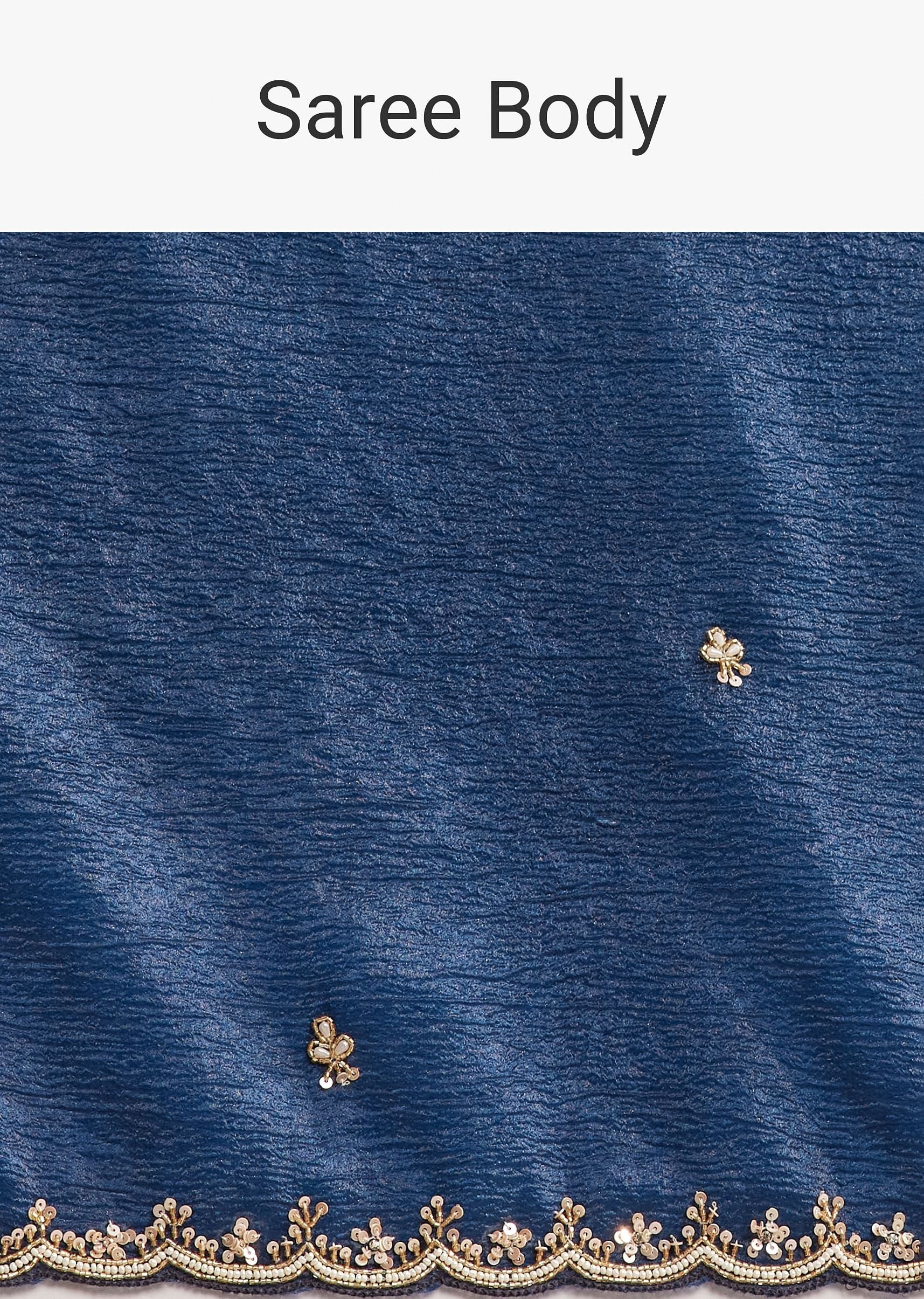 Step Into Elegance With This Crushed Tissue Saree, Exquisitely Crafted With Cutdana Embroidered Scallop Border. Its Delicate Shine And Graceful Drape Make It A Perfect Choice For Intimate Gatherings And Special Celebrations. The Sophisticated Design Reflects Modern Elegance. Captivate With Effortless Style.Awarded As The Most Trusted Brand We'Re Delivering Styles You Love Just As Promised.