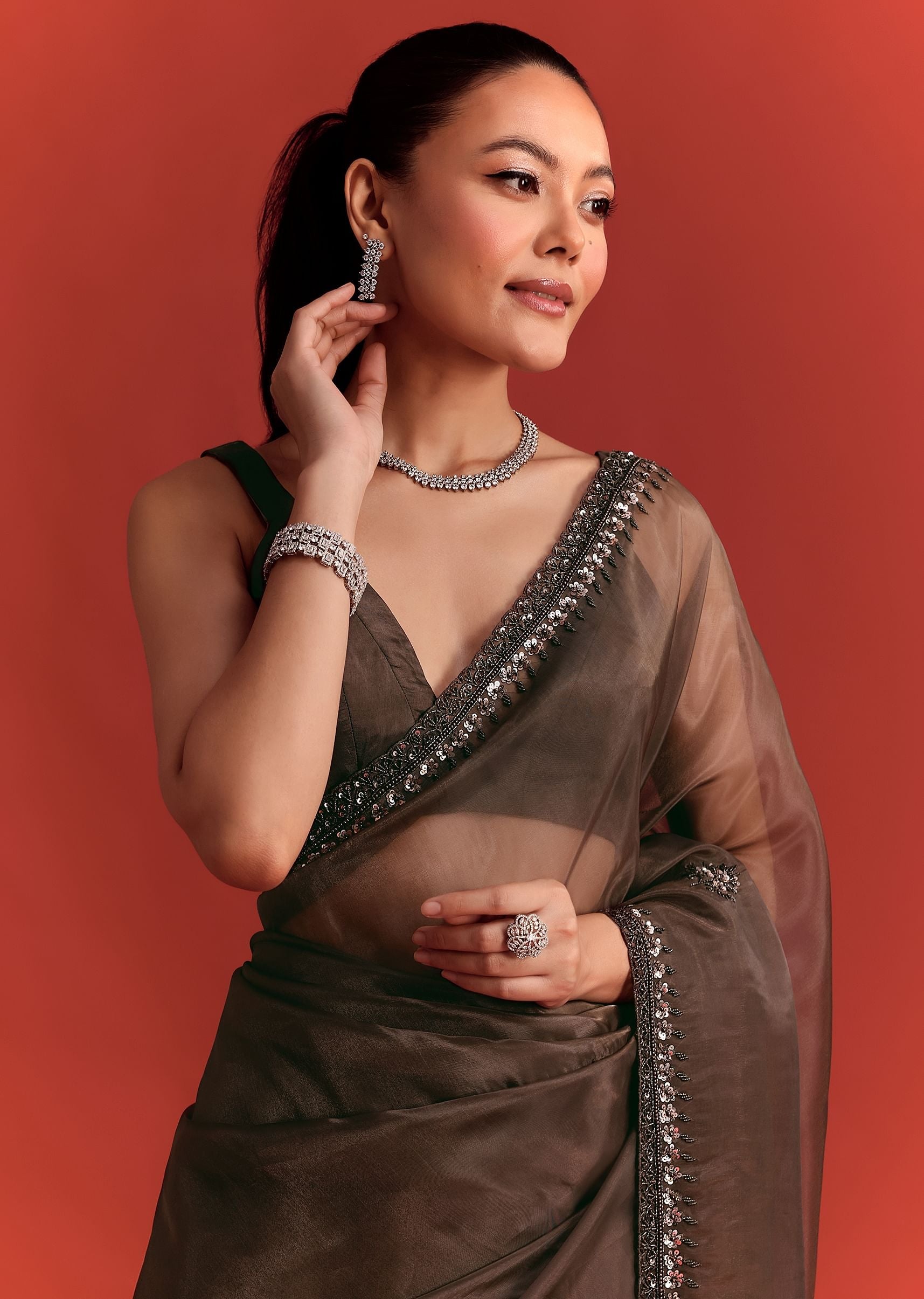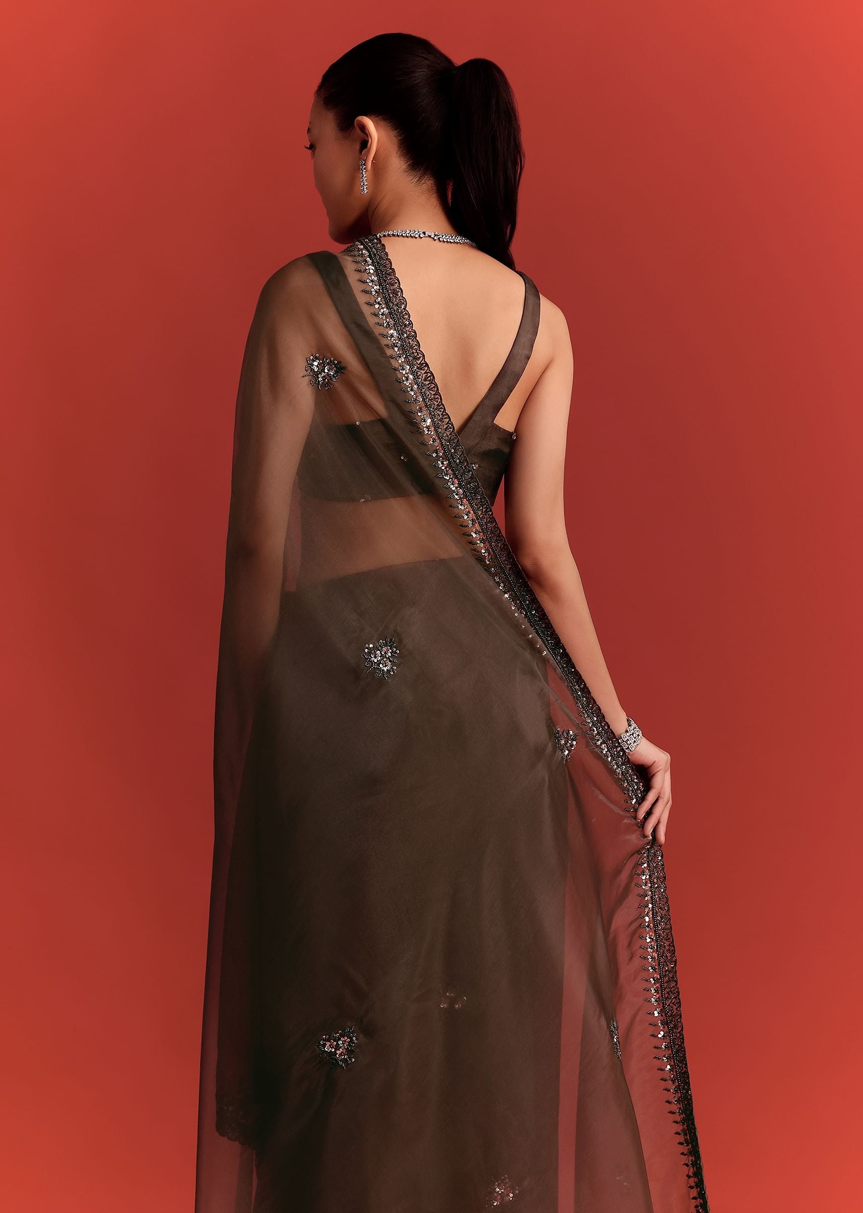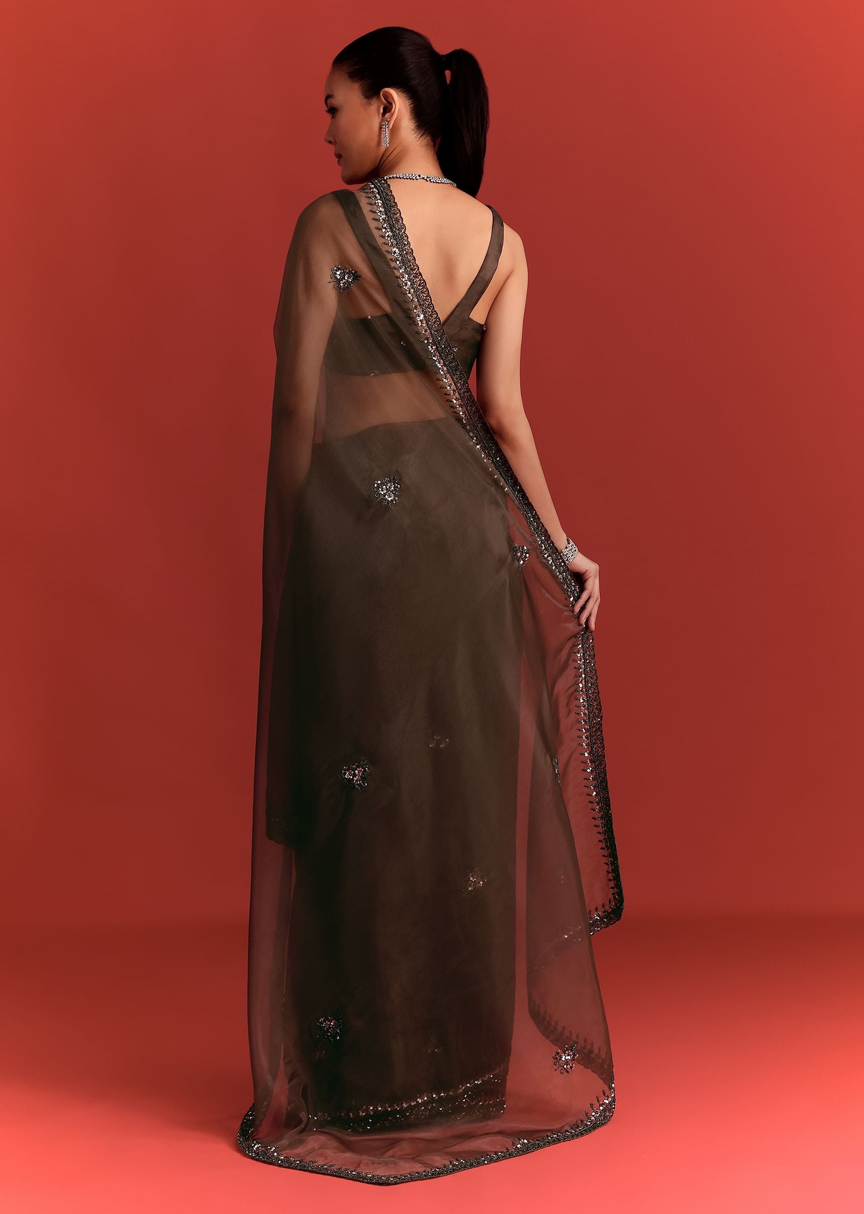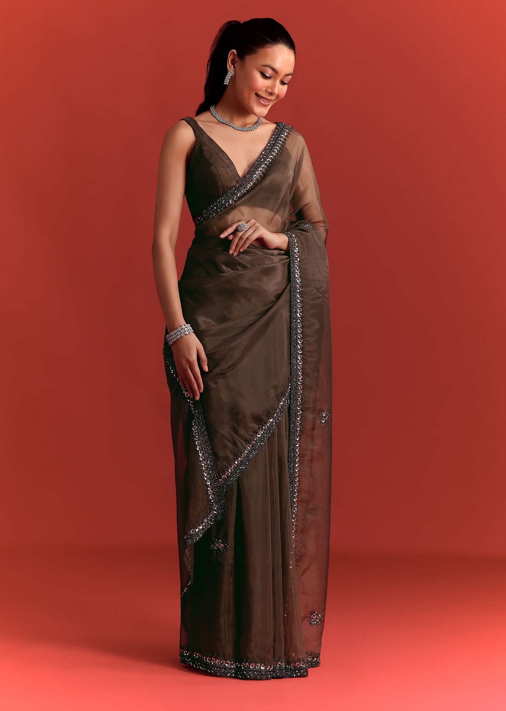 Illuminate your festive wardrobe with this gorgeous black tissue saree. The sheer fabric adds to its beauty, while the glittery accents of cutdana and sequin lend a modern appeal. A lovely choice for any celebration, drape yourself in this sensous silhouette to twirl into the season with style. Awarded as the Most Trusted Brand, we're delivering styles you love, just as promised.