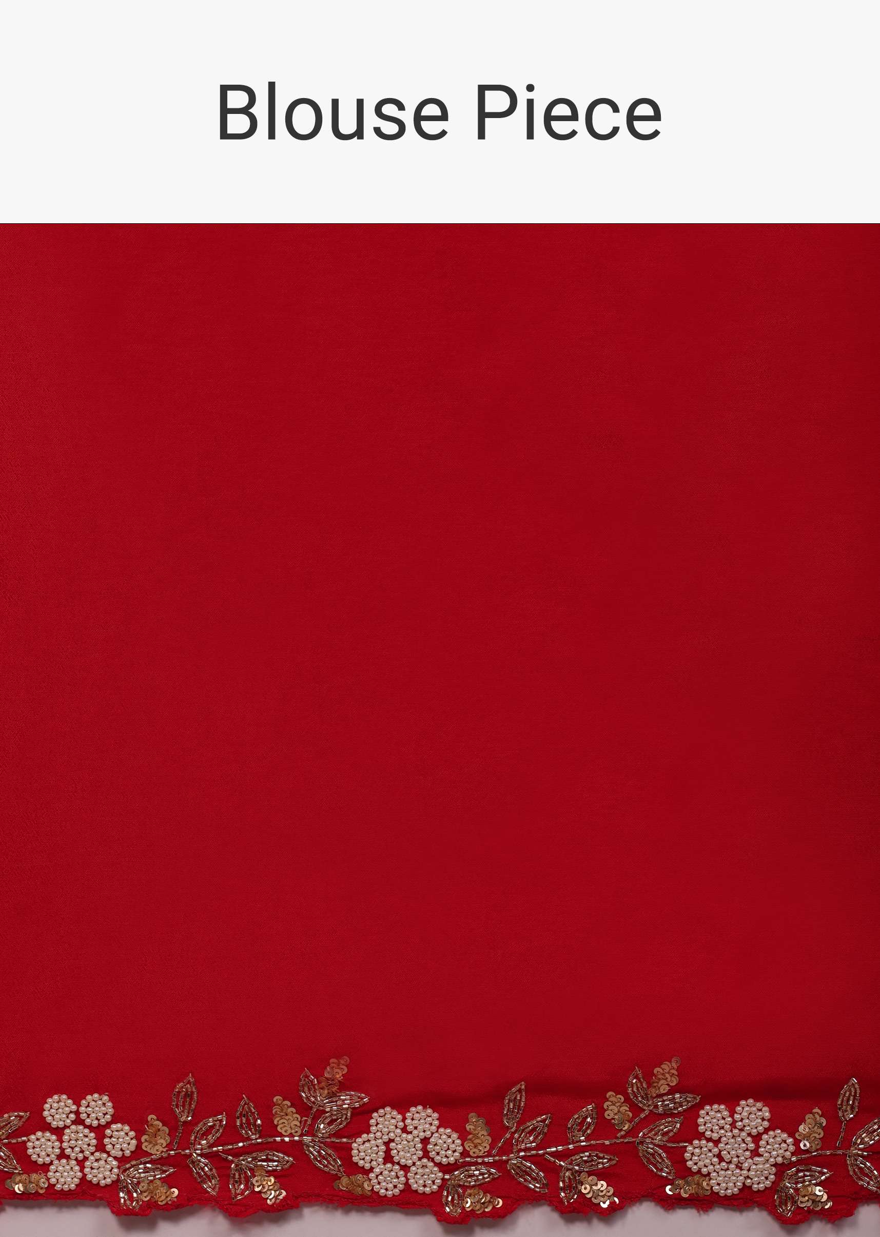 Cherry Red Saree In Organza With Cut Dana And Moti Embroidery