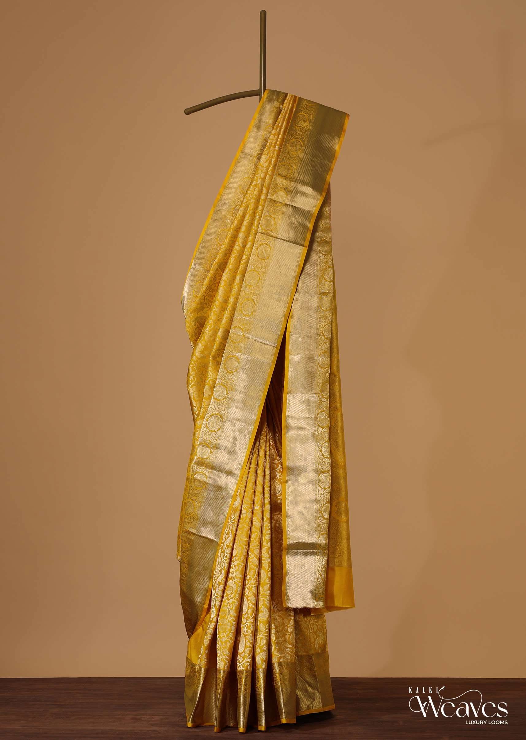 Daffodil Yellow Woven Kanjivaram Saree In Pure Silk With An Unstitched Blouse
