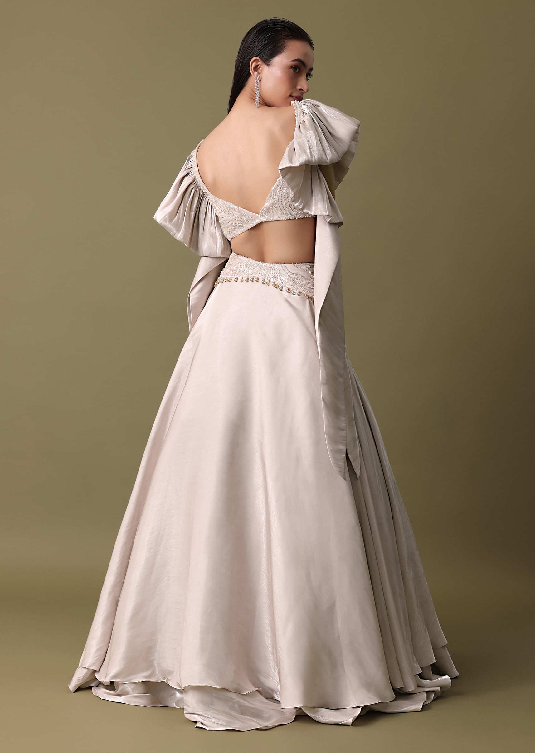- This set includes a blouse, skirt, and cape, offering versatility for receptions and wedding ceremonies.