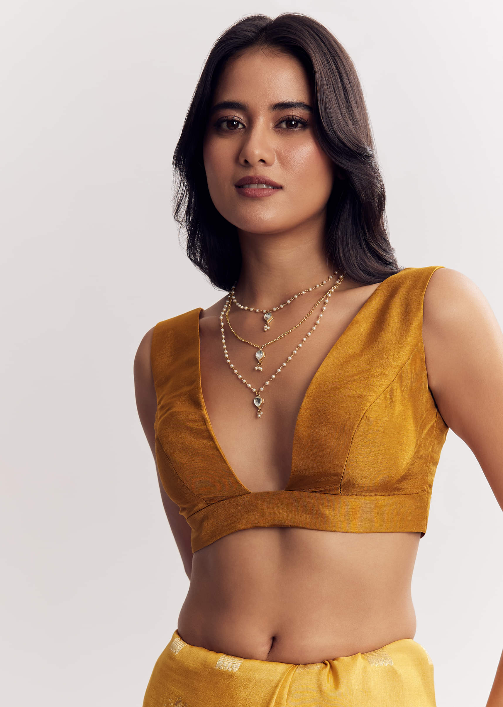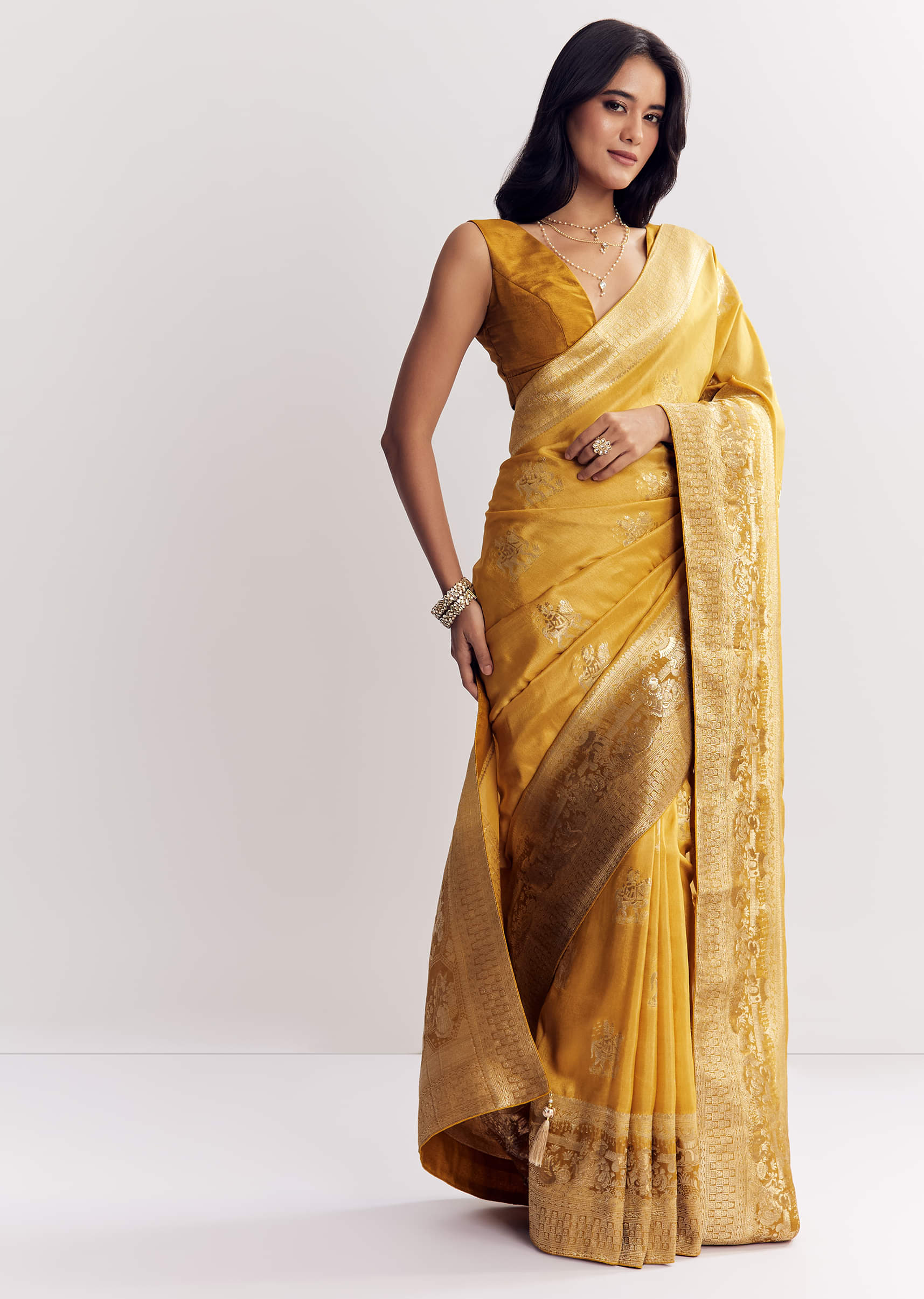 Lightweight chinon drapes easily and the finished border adds enough weight to keep the pallu in place.