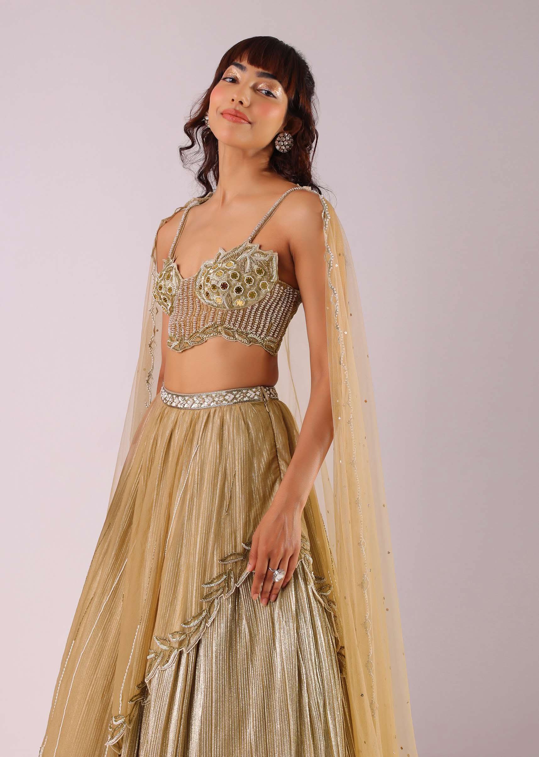 Glam Gold Embroidered Lehenga Set In Foil Knit Fabric