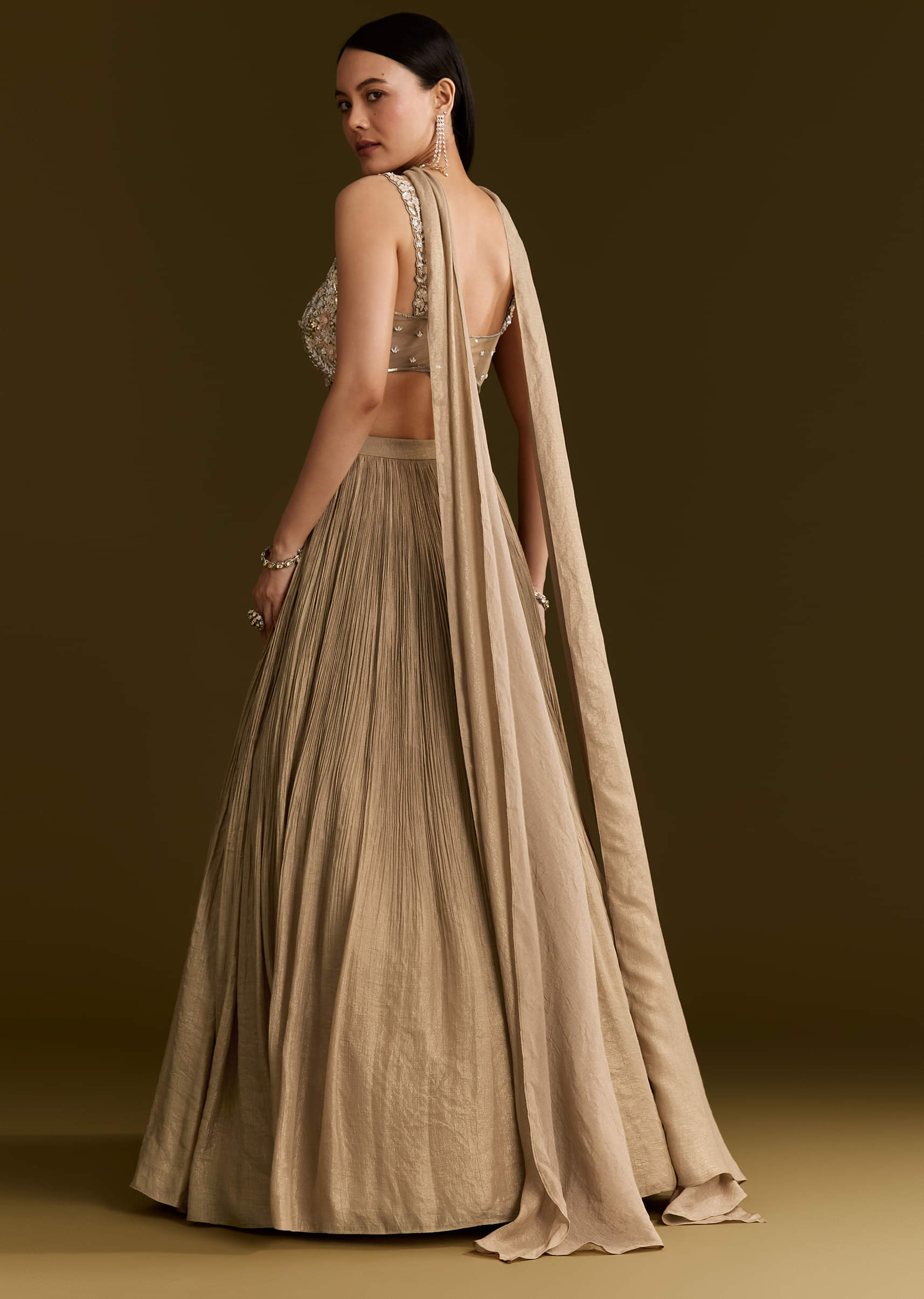 Gold French Tissue Lehenga With Sequins And Choker Dupatta