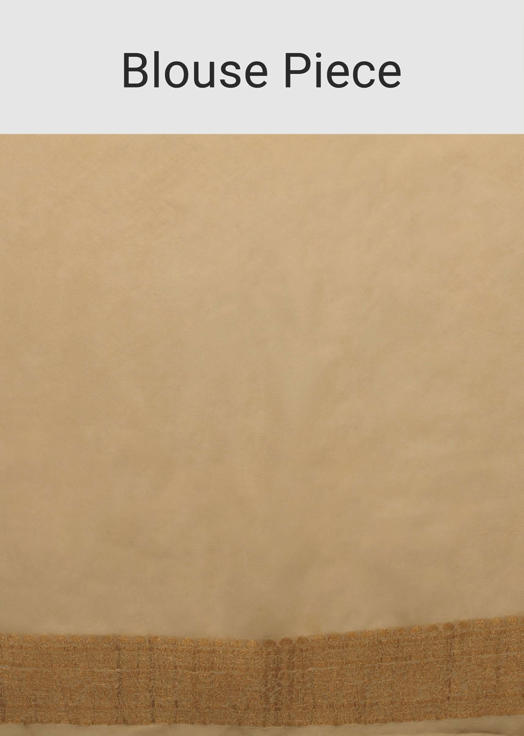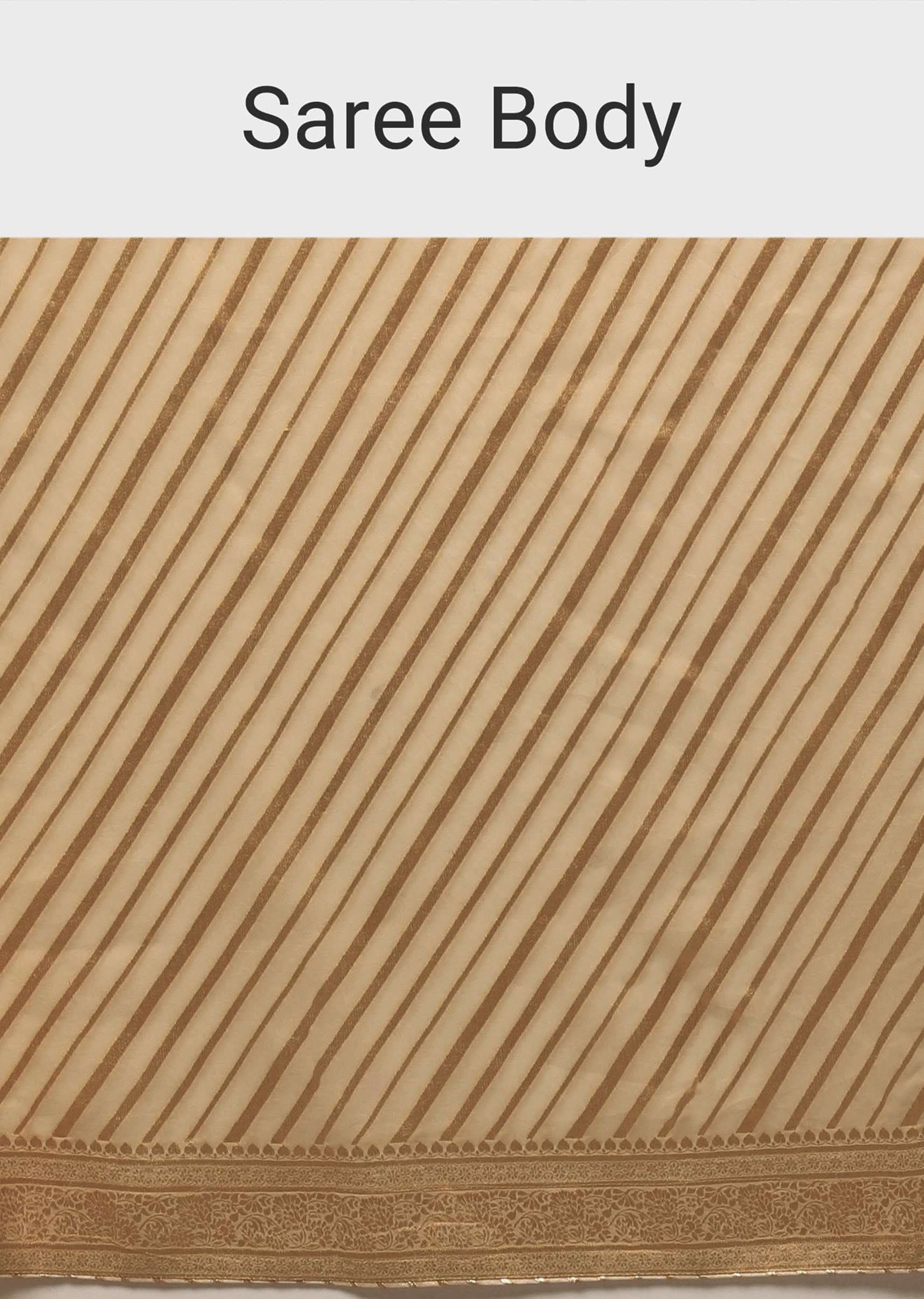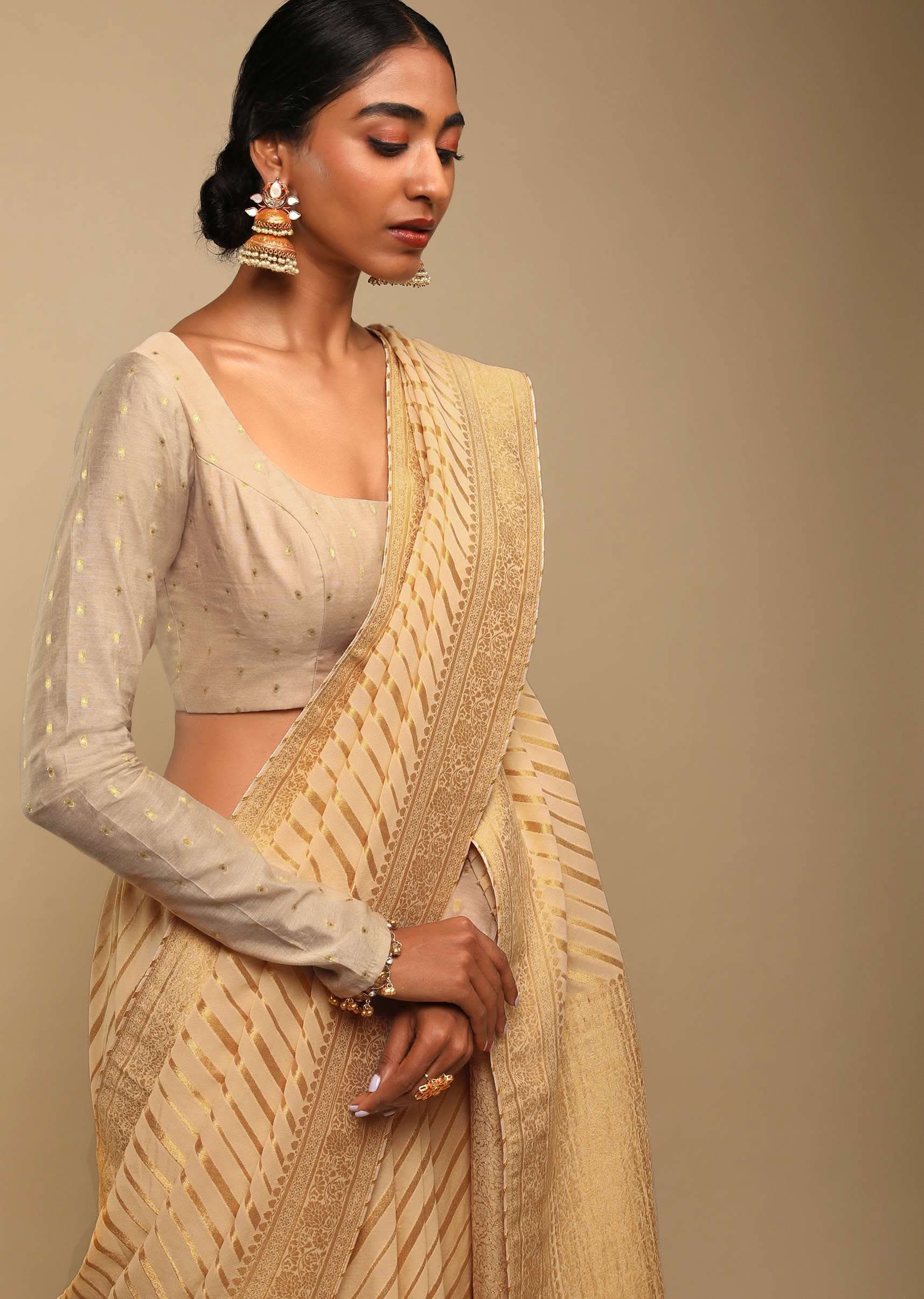 Gold Saree In Georgette With Woven Diagonal Stripes, Floral Pallu And Unstitched Blouse