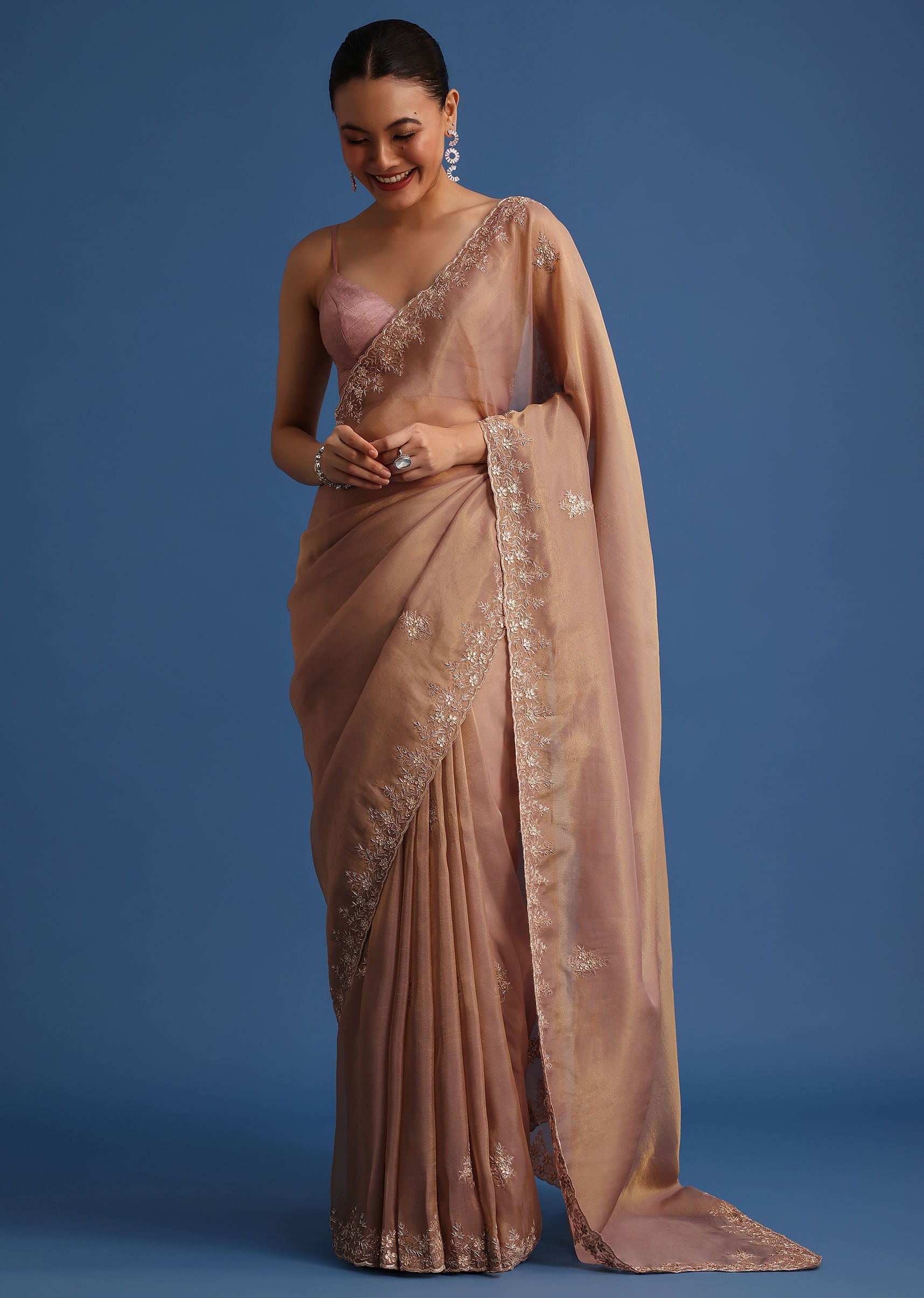 Gold Tissue Saree With Stones And Cutdana Embroidered Border
