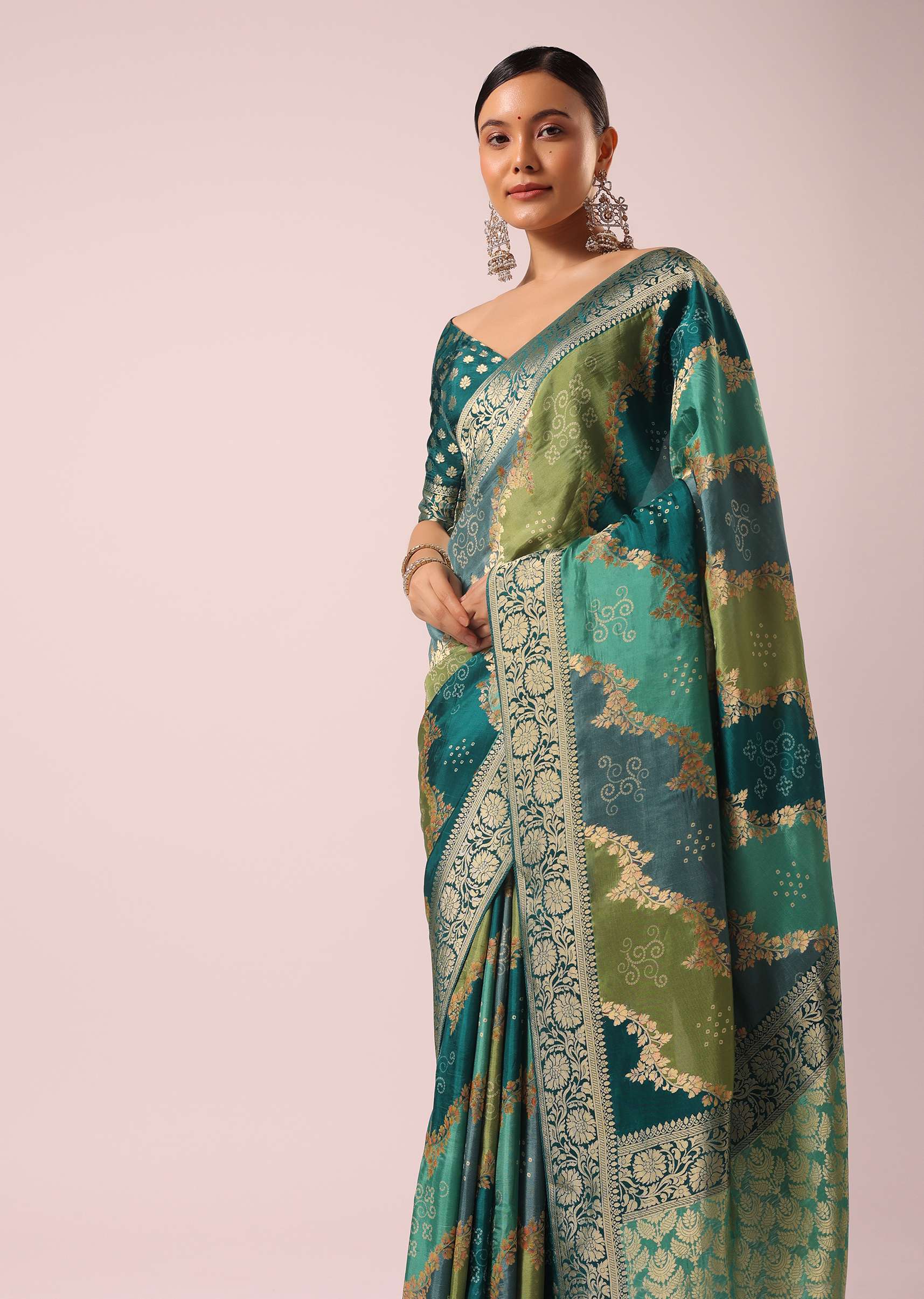 - Presenting our exquisite green dola silk saree for the modern Indian woman.
