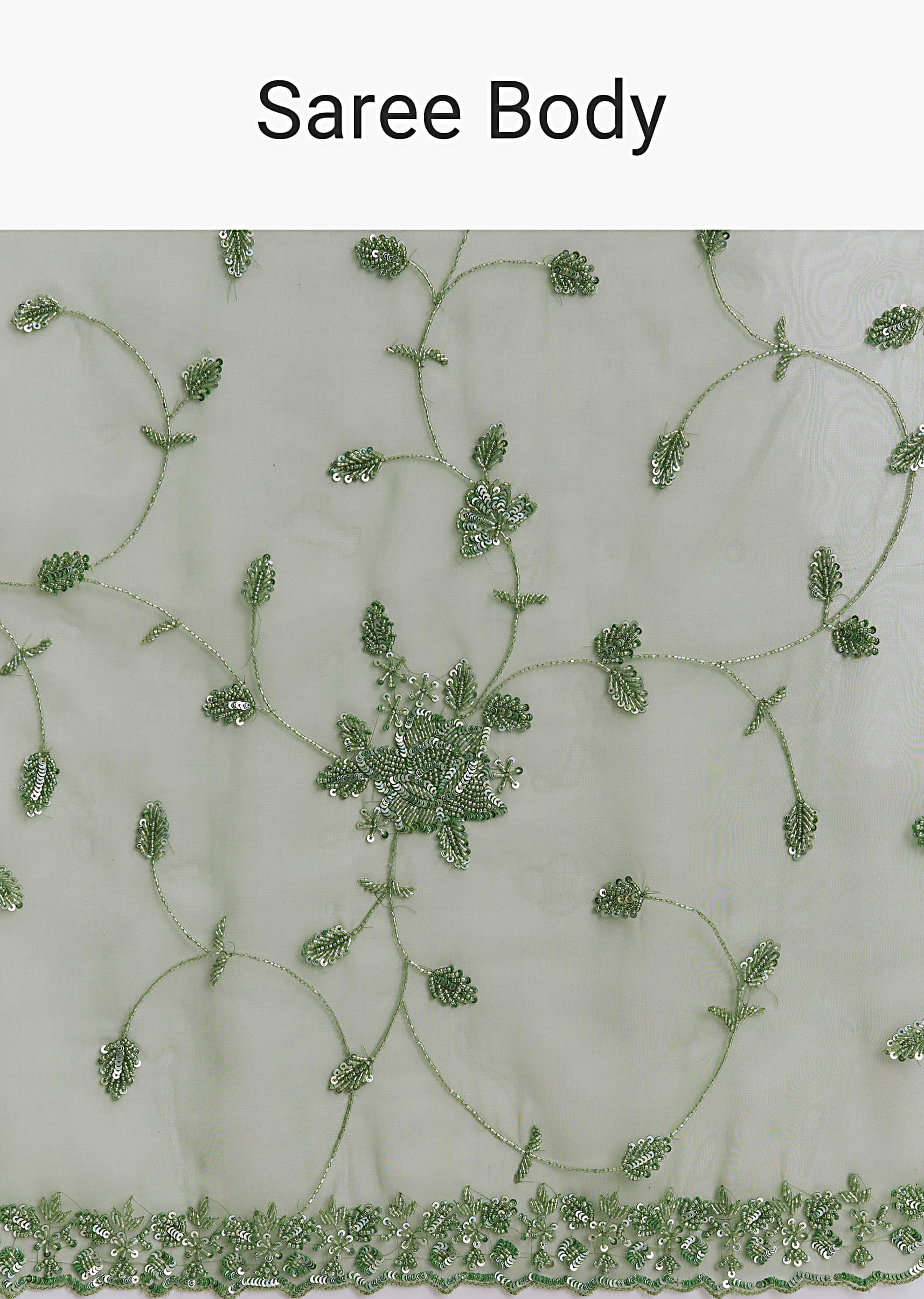 Green Tissue Saree With Jaal And Sequin Embroidery