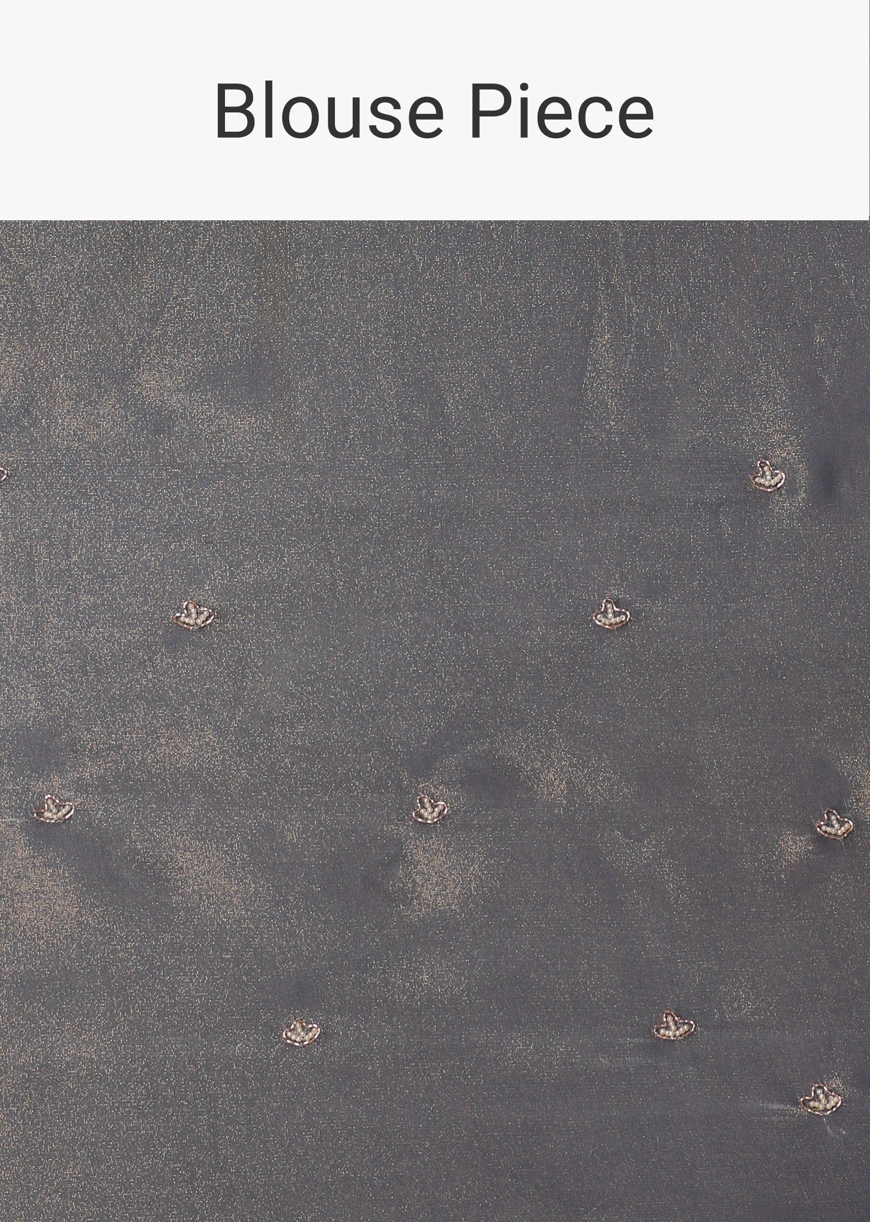 Grey Glass Tissue Saree With Mirror Work Border And Unstitched Blouse Piece