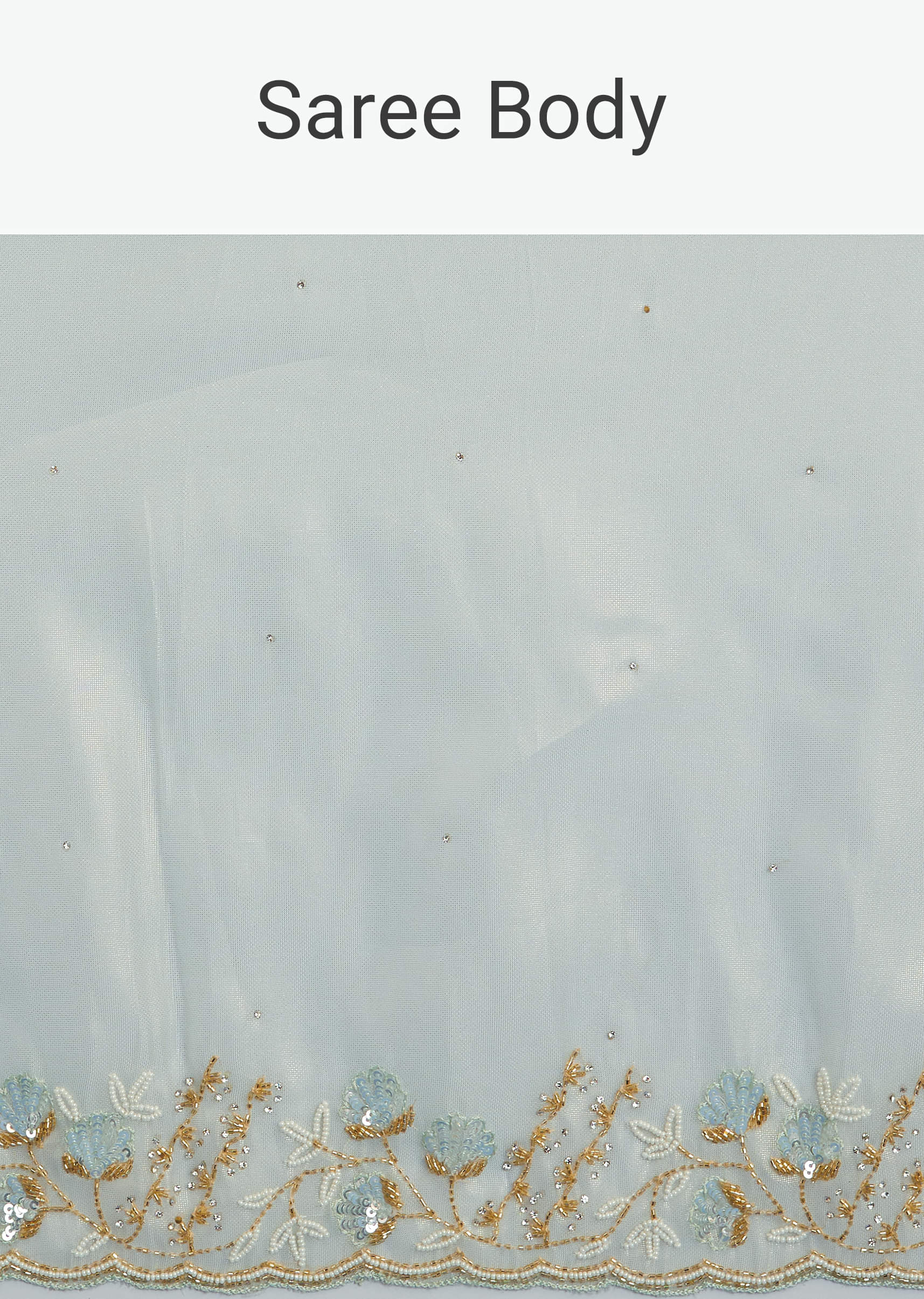Ice Blue Organza Tissue Saree With Beaded Scallop Border