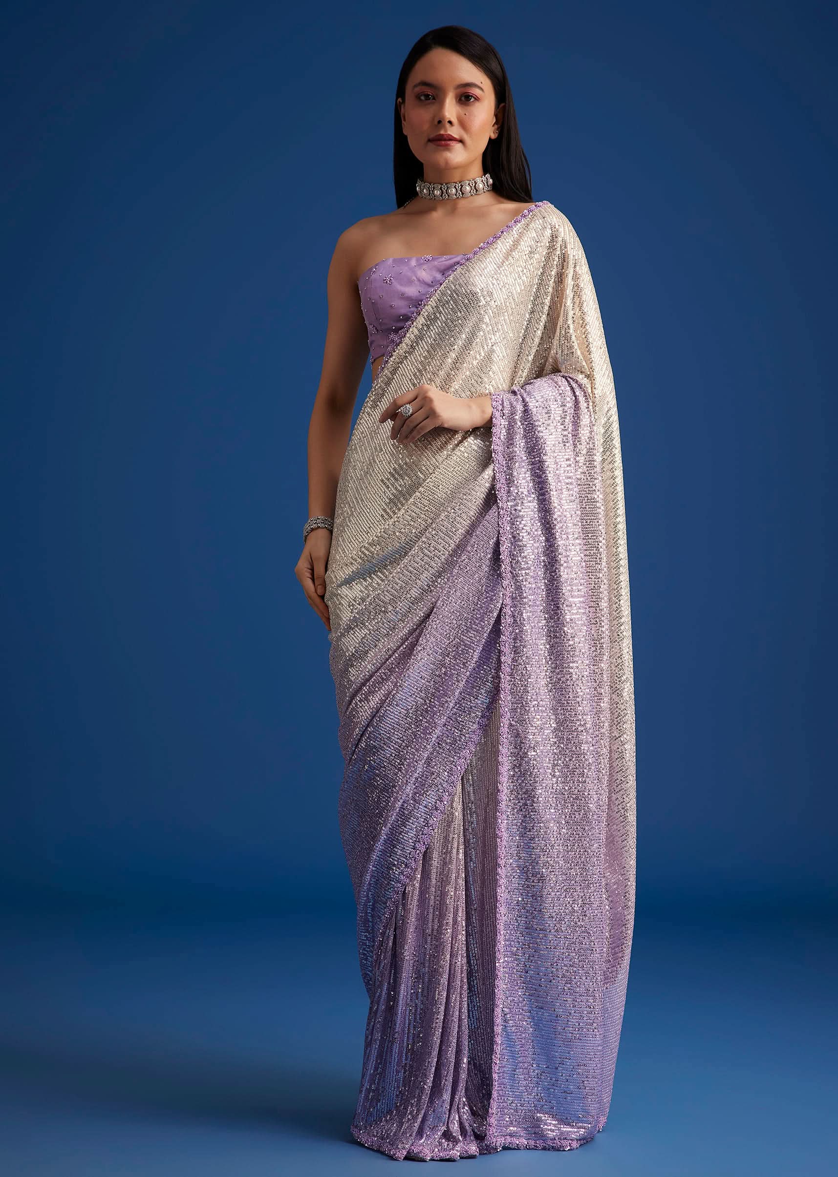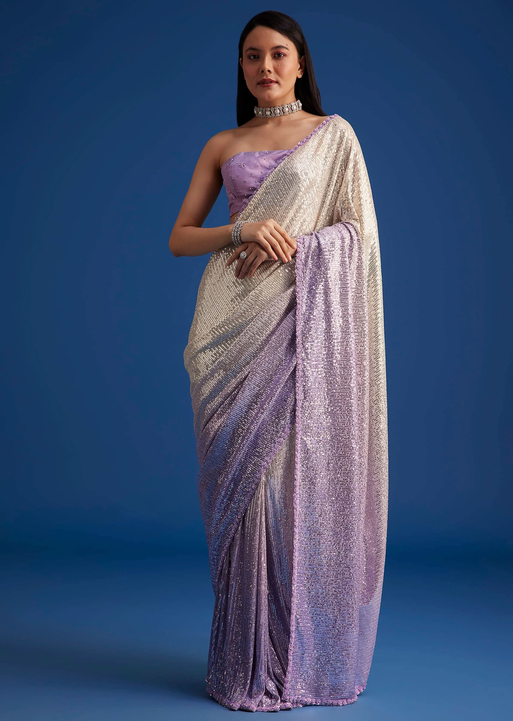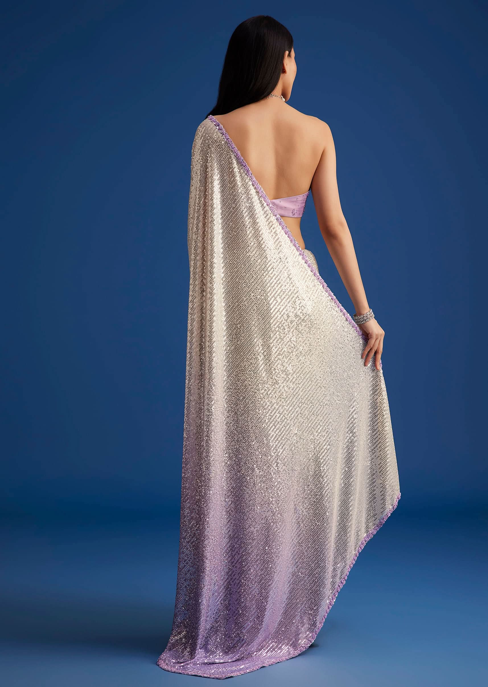 Lavender Purple Ombre Sequins Saree With An Embellished Border