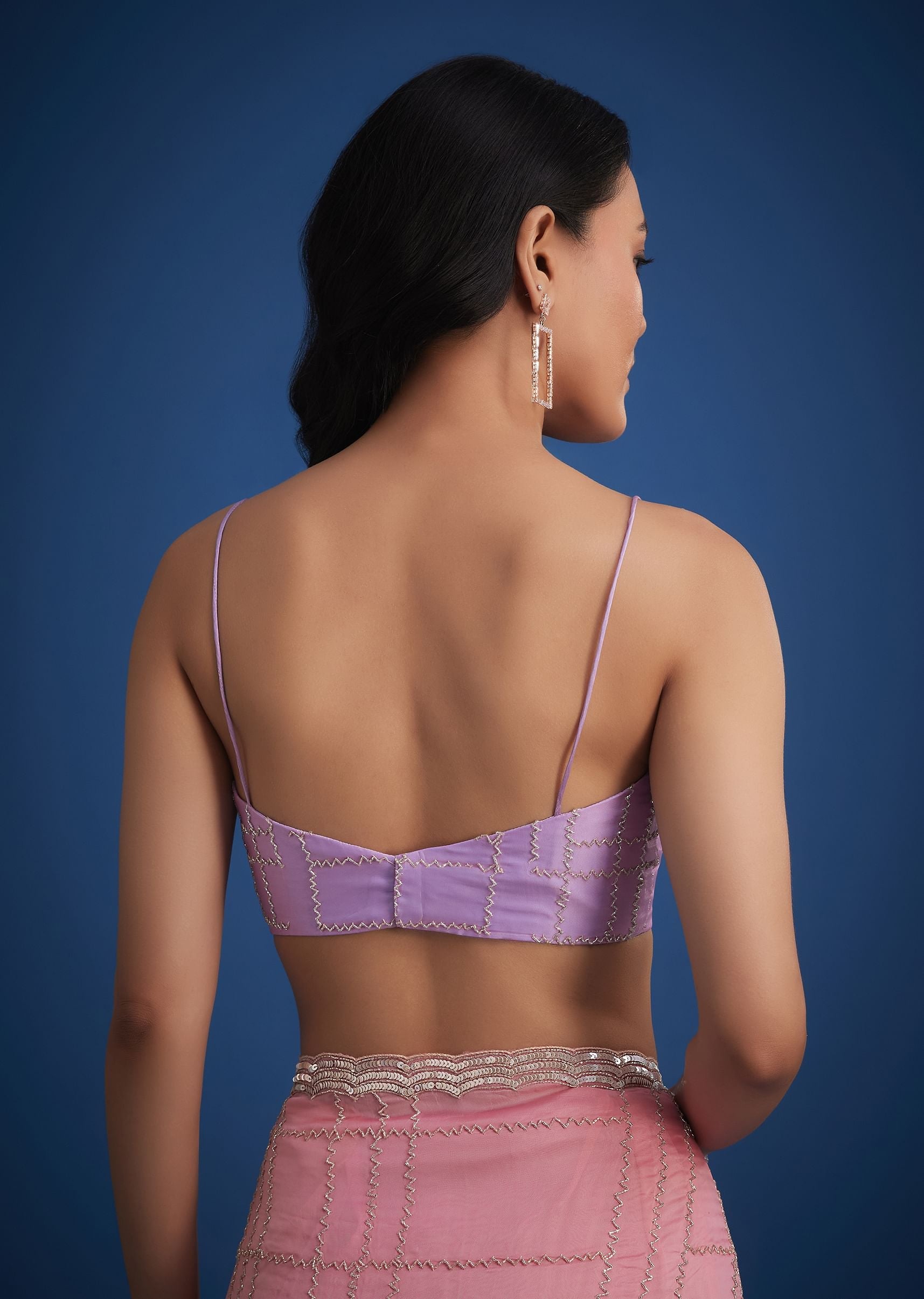 Lavender Shaded Soft Tissue Embroidered With Cudtana And Sequin Work