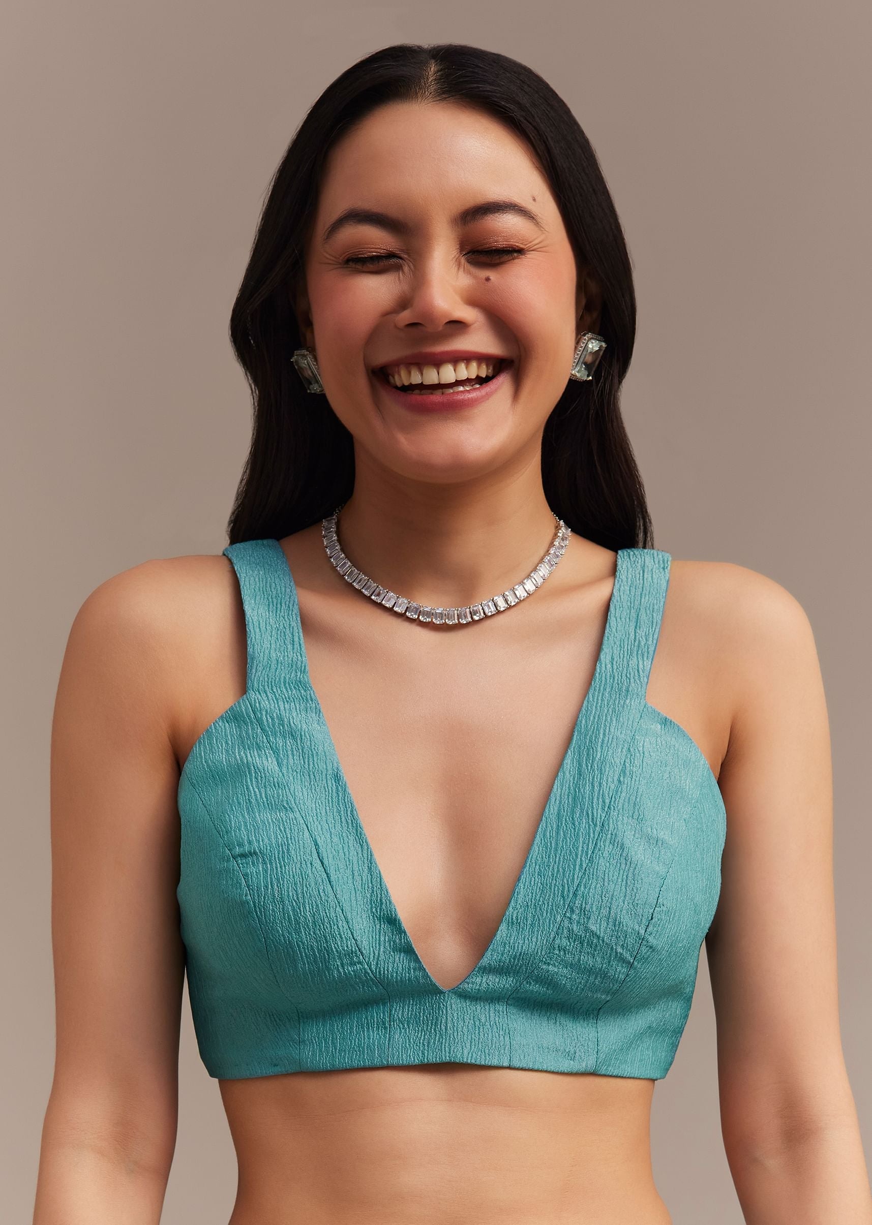 Bask in timeless elegance with this light blue crushed tissue saree featuring exquisite cutdana and stone embroidery. The delicate embellishments shimmer subtly against the sheer fabric creating a mesmerizing play of texture and light. The soft pastel hue lends a serene charm making it perfect for daytime festivities and celebrations. A graceful ensemble that exudes sophistication and finesse.Awarded as the Most Trusted Brand we're delivering styles you love just as promised.