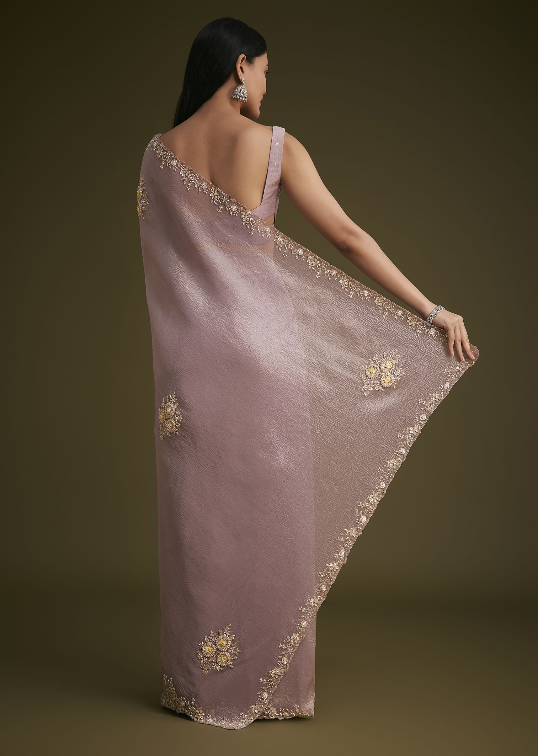 Step Into Timeless Elegance With This Light Purple Glossy Tissue Saree, A Masterpiece Of Intricate Artistry. Adorned With Exquisite Floral Embroidery, The Saree Sparkles With Delicate Cutdana, Shimmering Sequins, And Intricate Beadwork That Radiate A Subtle Charm. Perfect For Weddings And Evening Galas, Its Luxurious Sheen And Graceful Detailing Are Sure To Make You The Center Of Attention. This Saree Effortlessly Combines Sophistication With Glamour, Creating A Look That’S Both Enchanting And Unforgettable.Awarded as the Most Trusted Brand, we're delivering styles you love, just as promised.