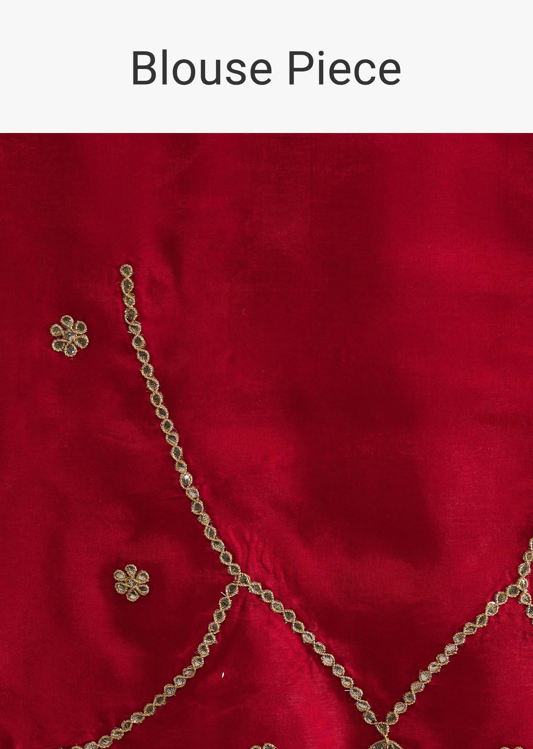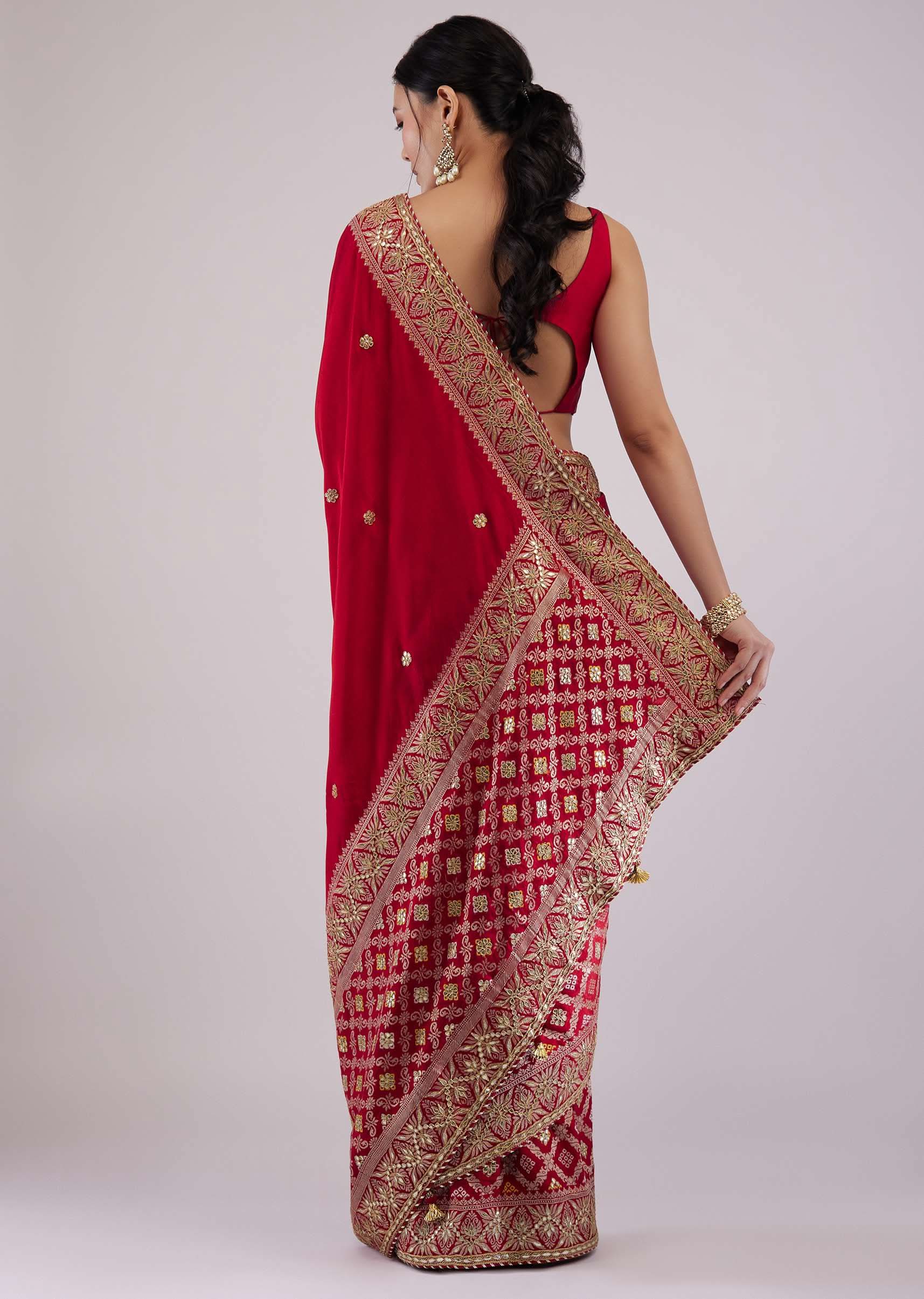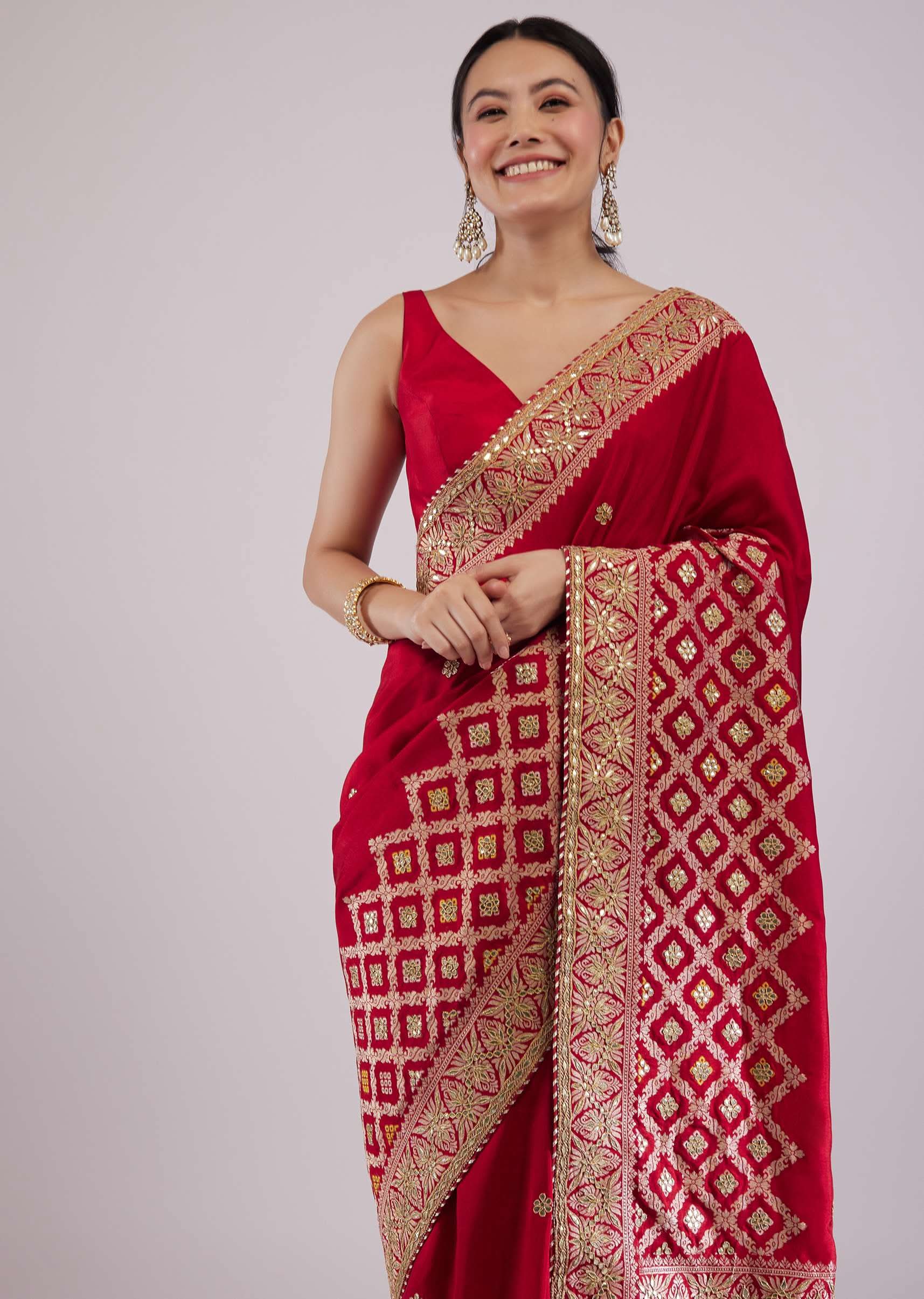 - Feel the royal ethnic vibe when you adorn this stunning scarlet red silk saree.
