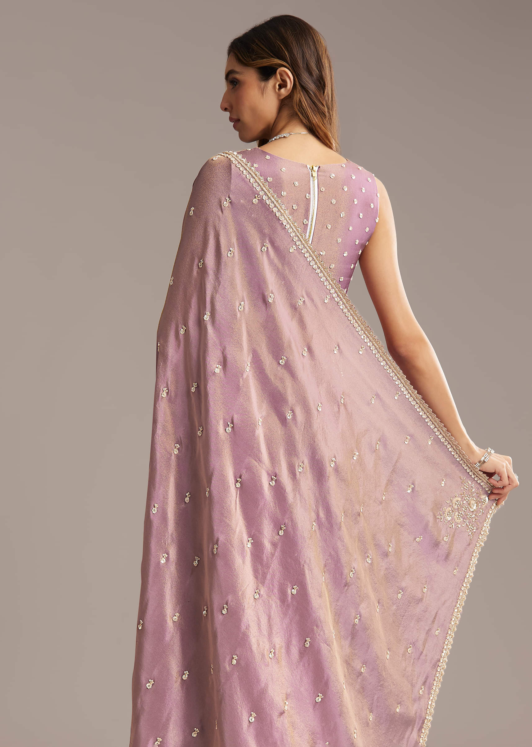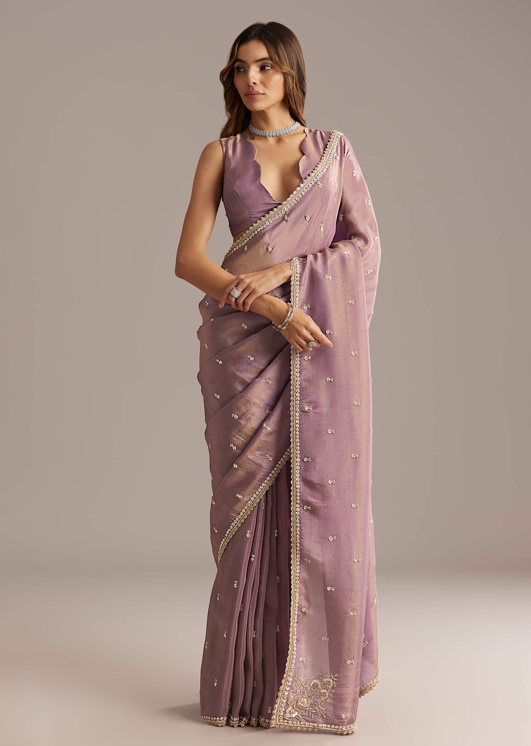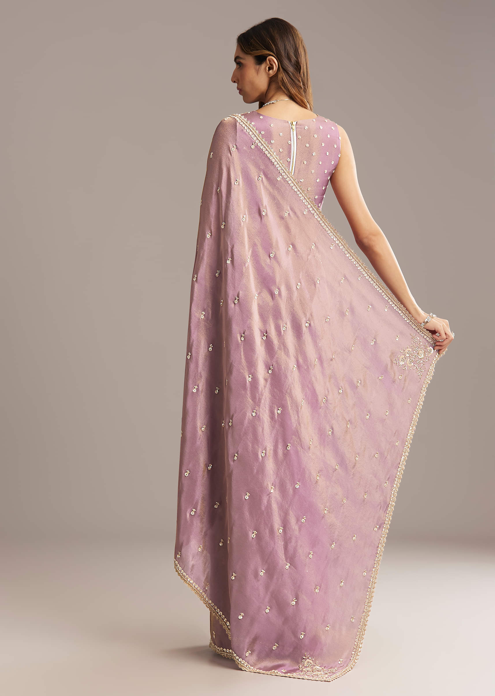 Mauve Tissue Saree With Cutdana And Bead Embroidery