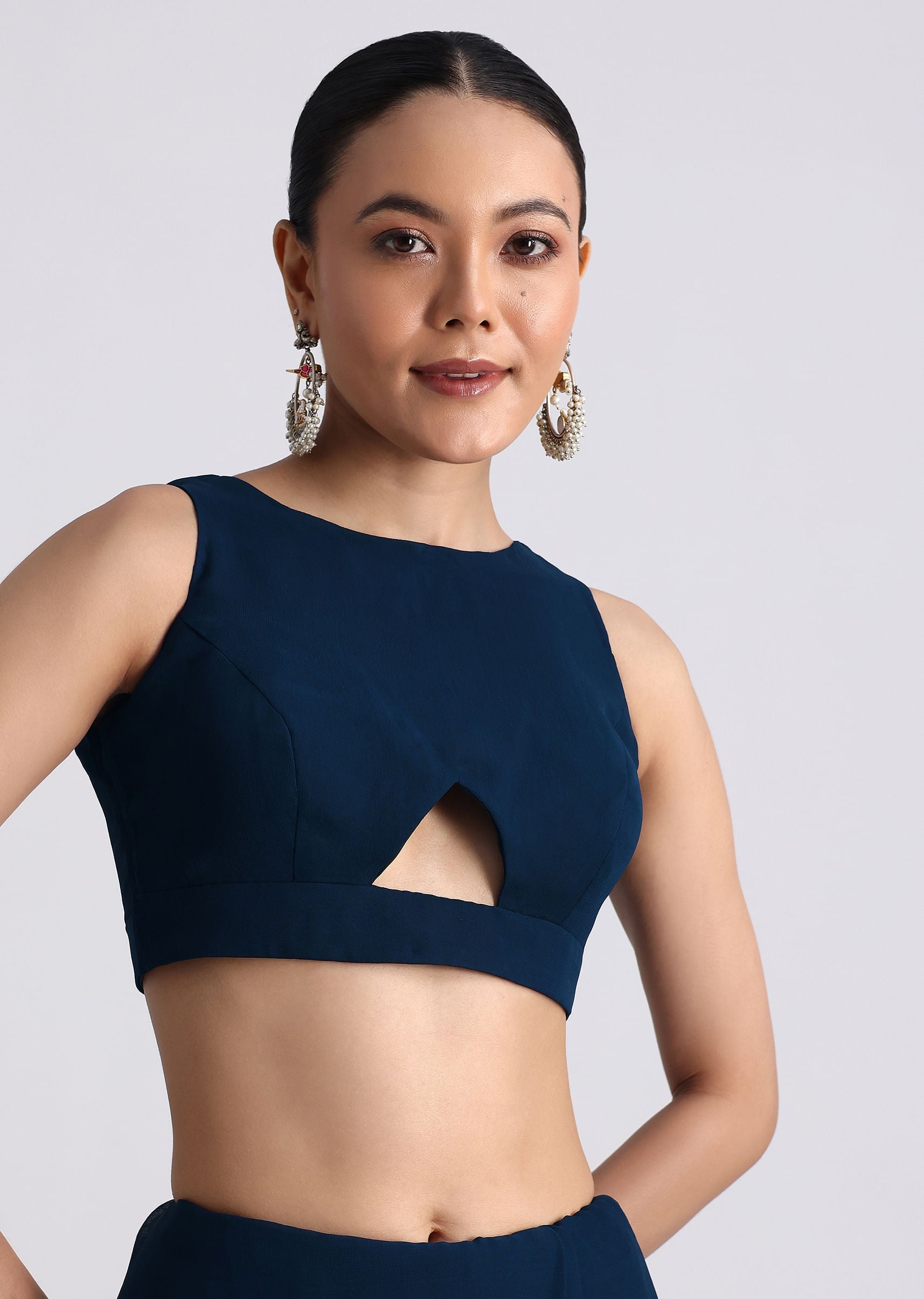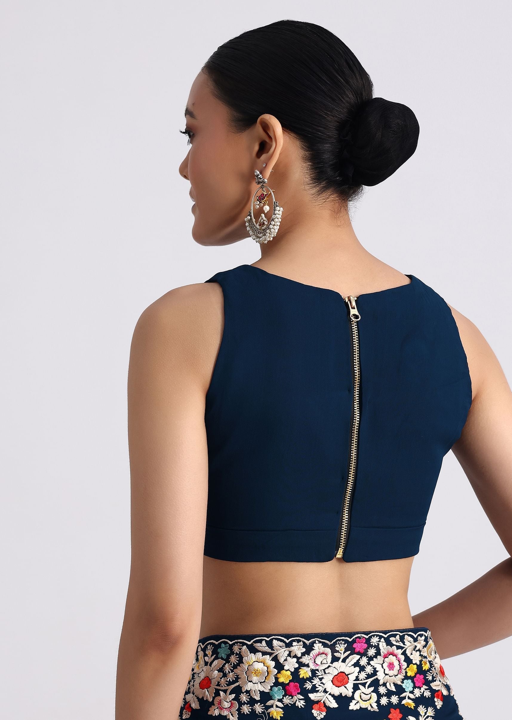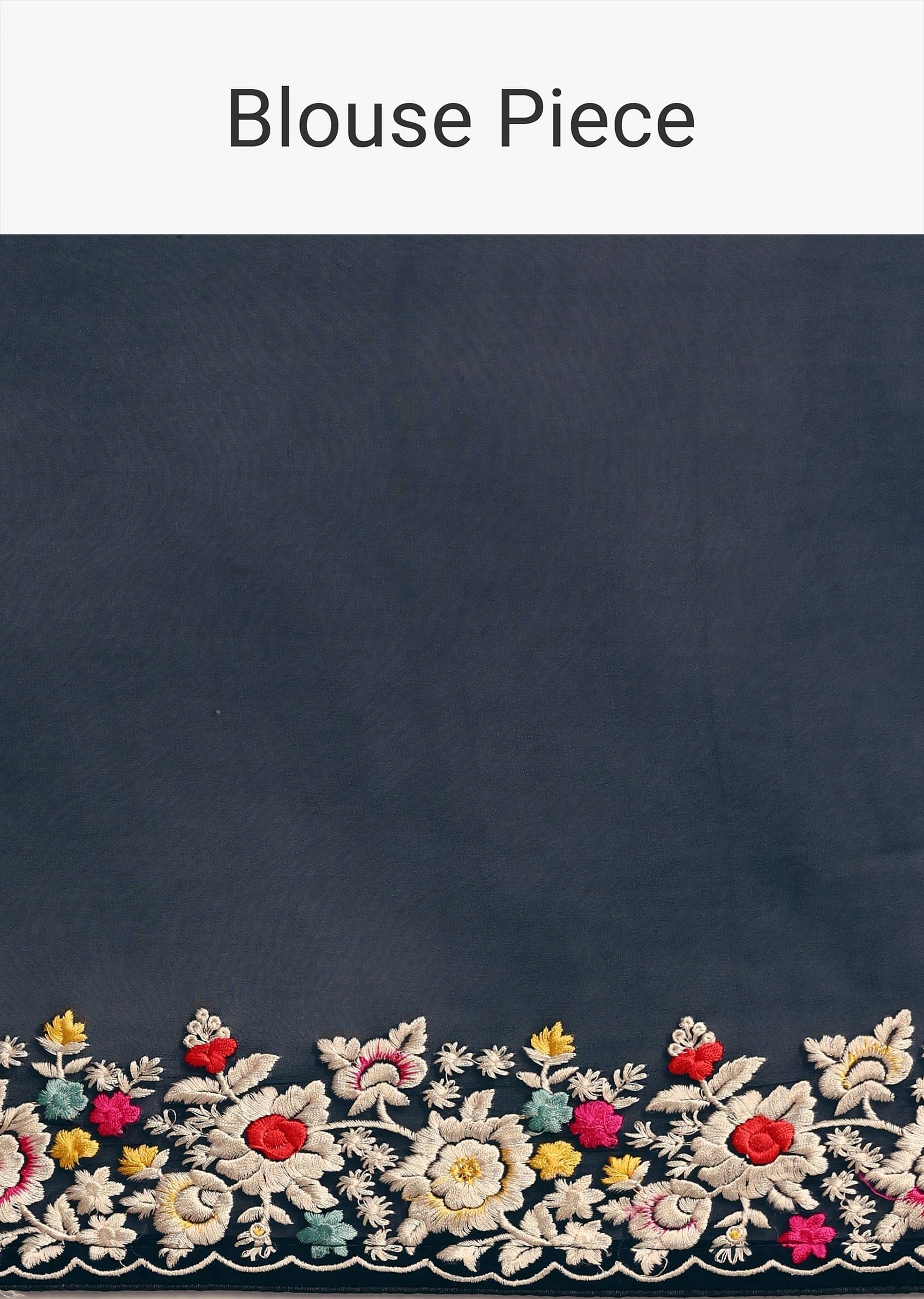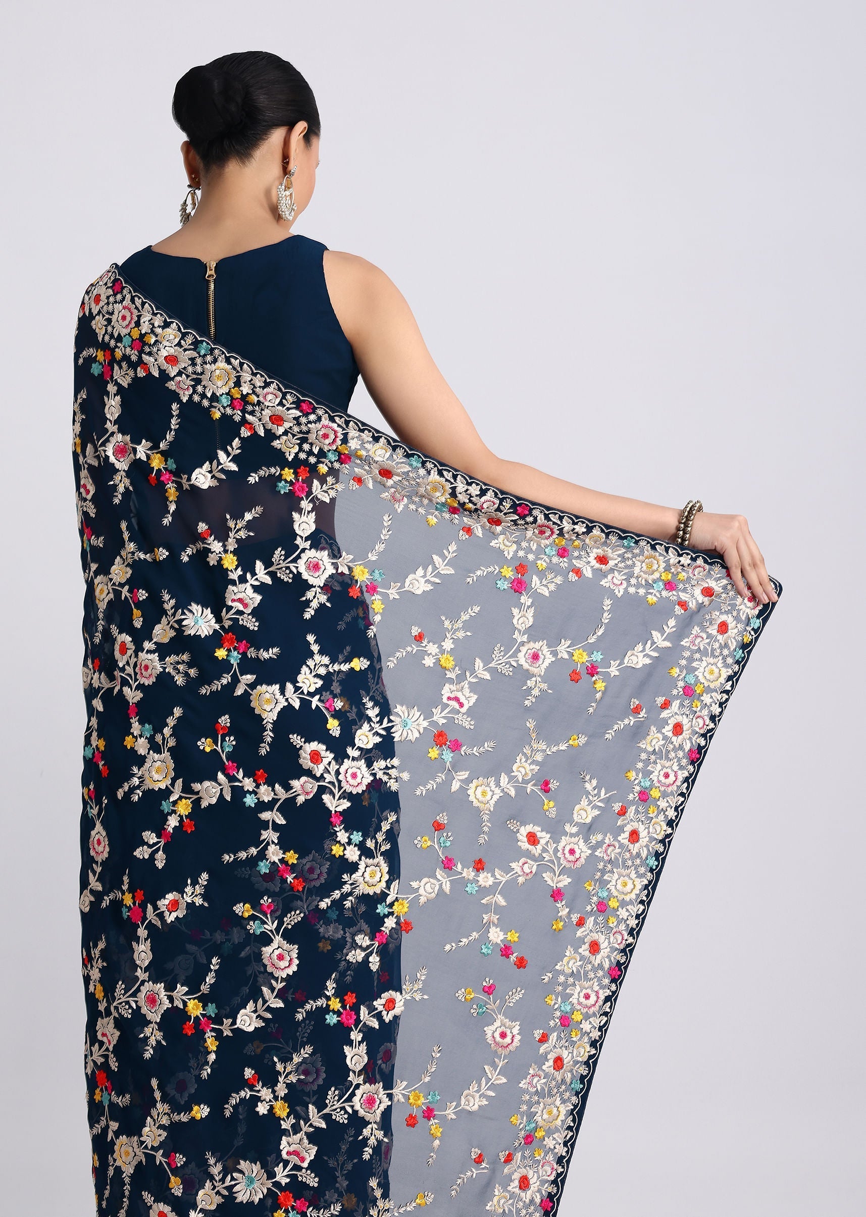 - Exude old-word charm with new-age glamour with this midnight blue saree.