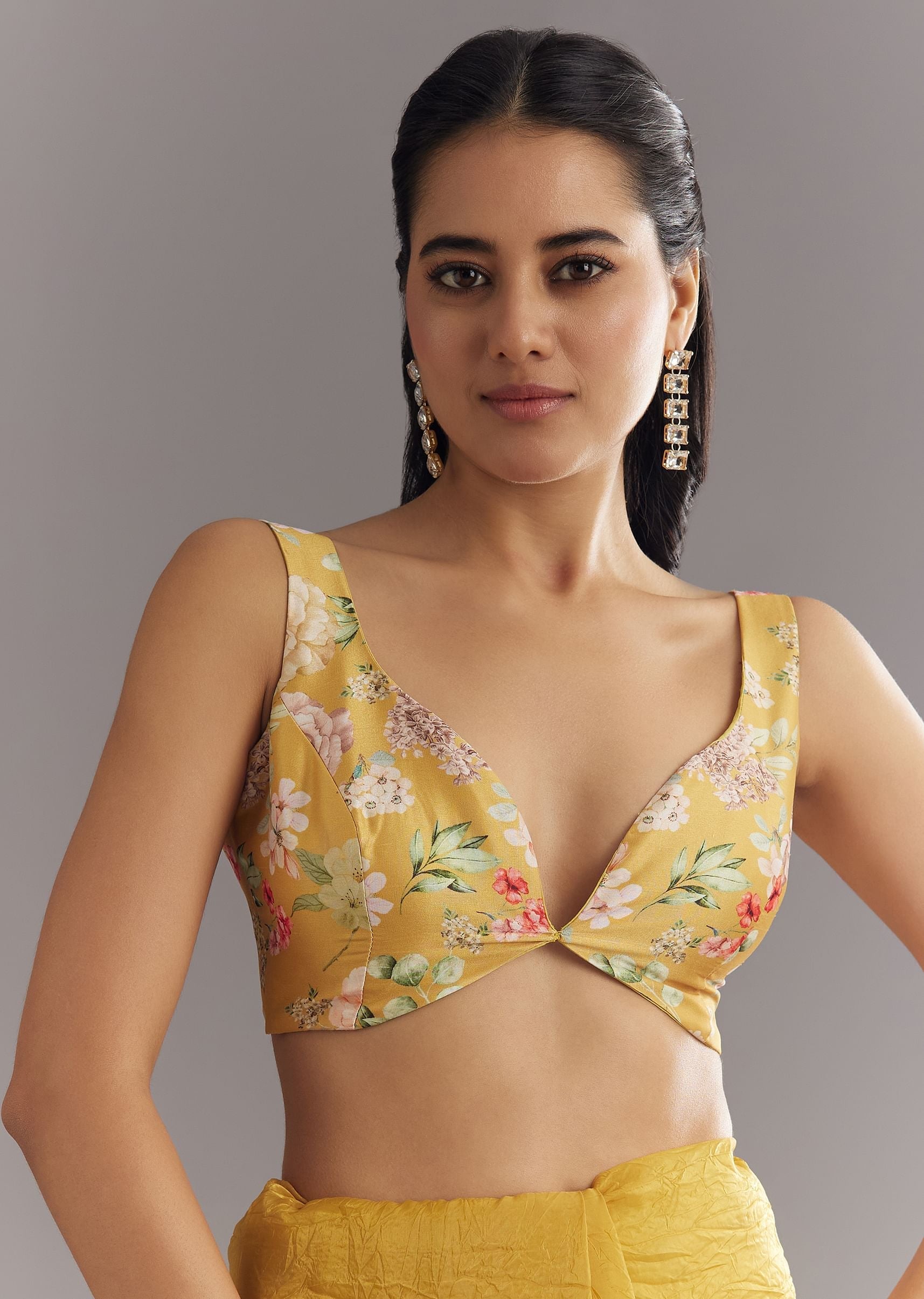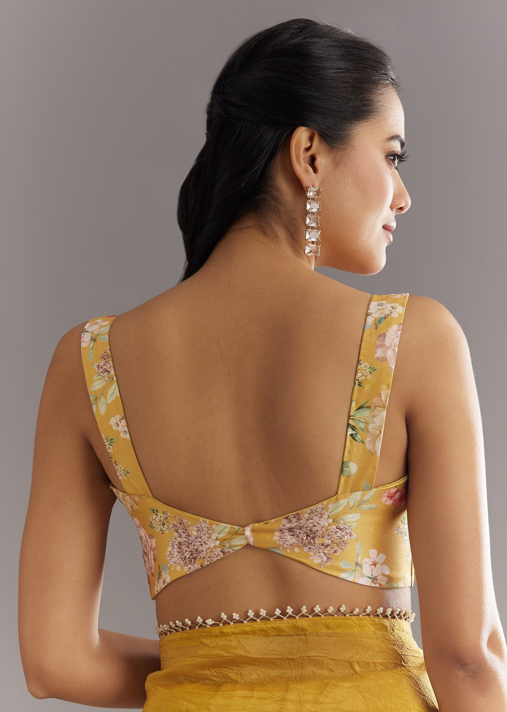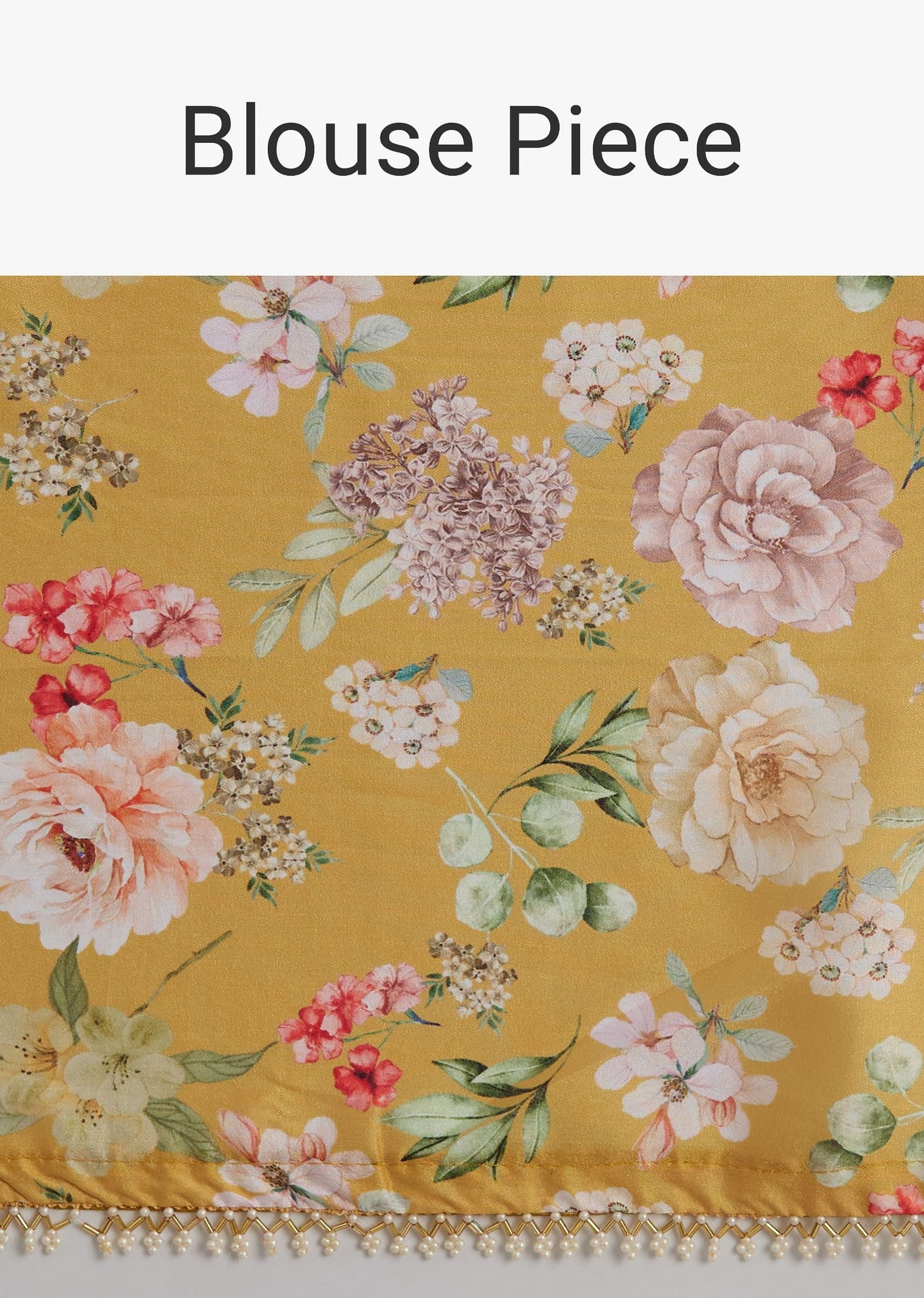 A mustard gold dream, this crushed tissue saree glows with a border of moti and cutdana—radiating festive sunshine in every pleat. Awarded as the Most Trusted Brand, we're delivering styles you love, just as promised.