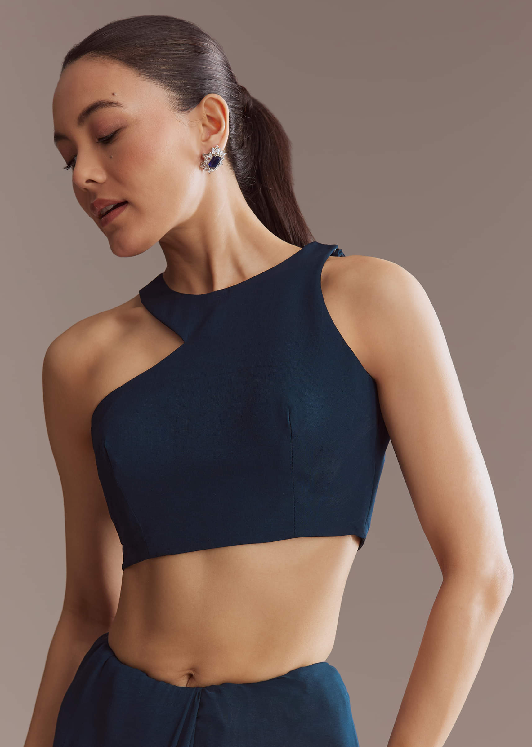 Navy Blue Georgette Saree With Kashmiri Kashida Embroidery