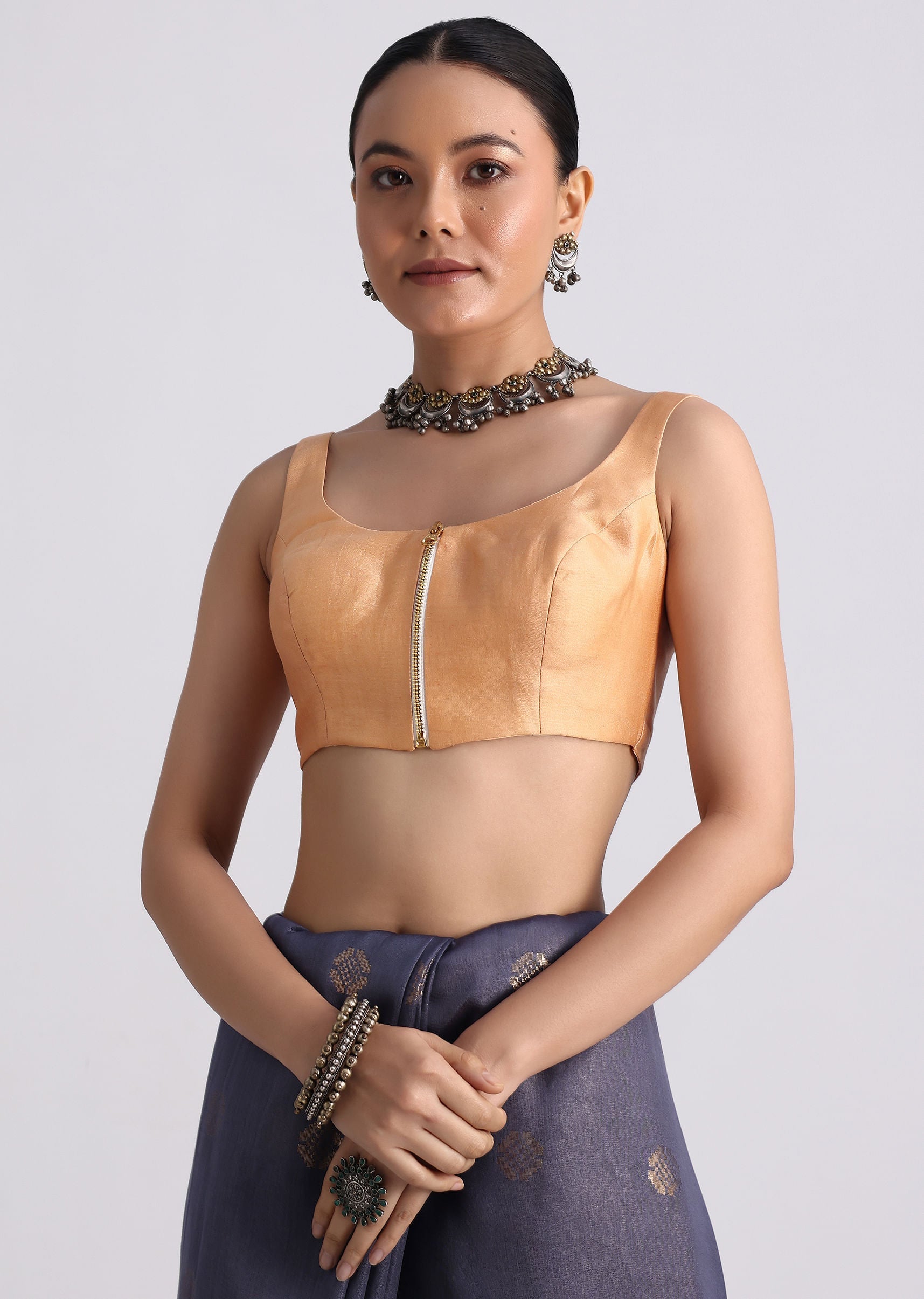 - Featuring beautifully designed woven buttis in hues of gold, the contrast pallu and tassel detailing at the border enriches its regal charm.