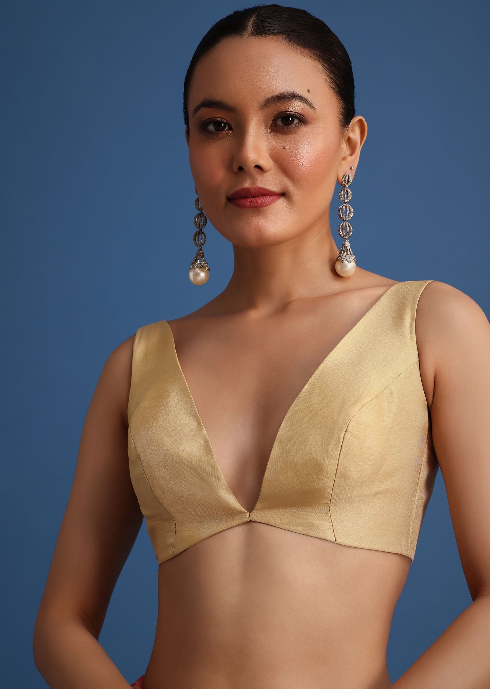 Pair with antique-finish jhumkas, a sleek bun and gold bangles; carry a potli to echo the gota.