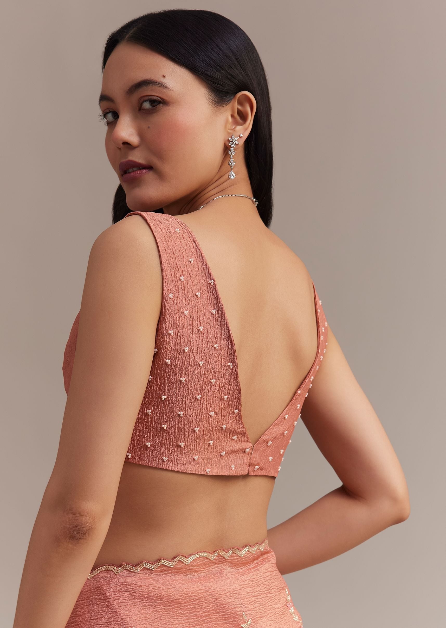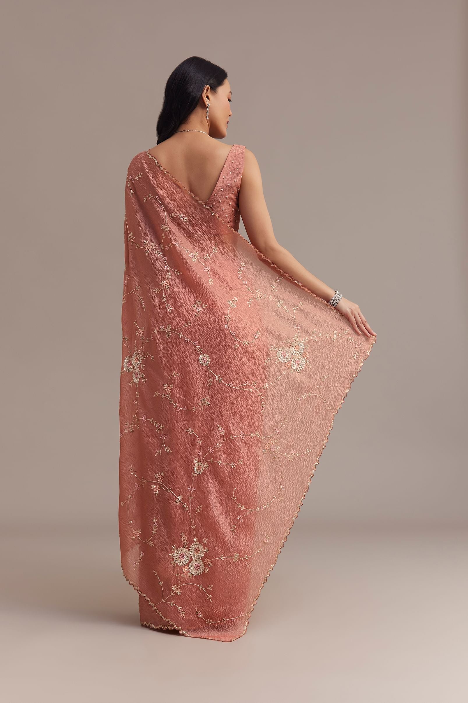 Peach Crushed Tissue Saree With Cutdana And Sequins Jaal Work