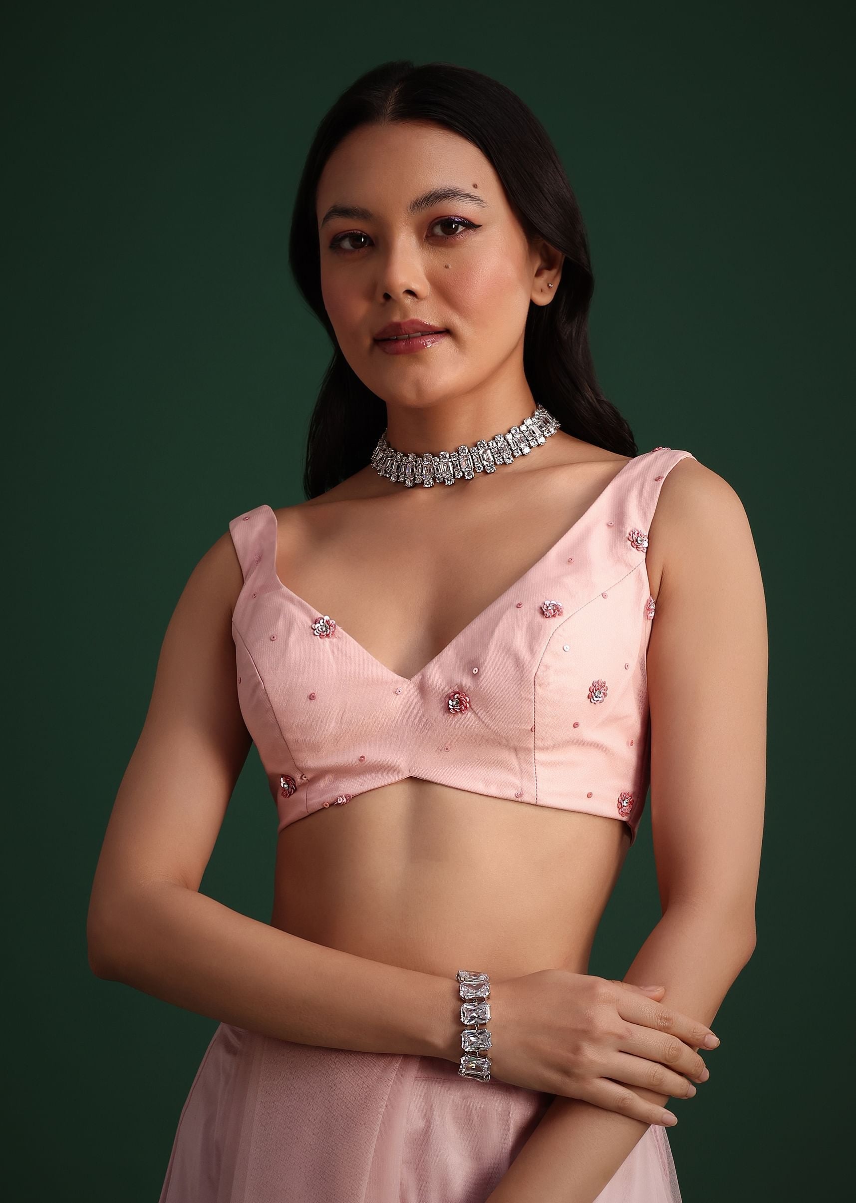Peach Net Saree With Cutdana And Sequin Embroidery