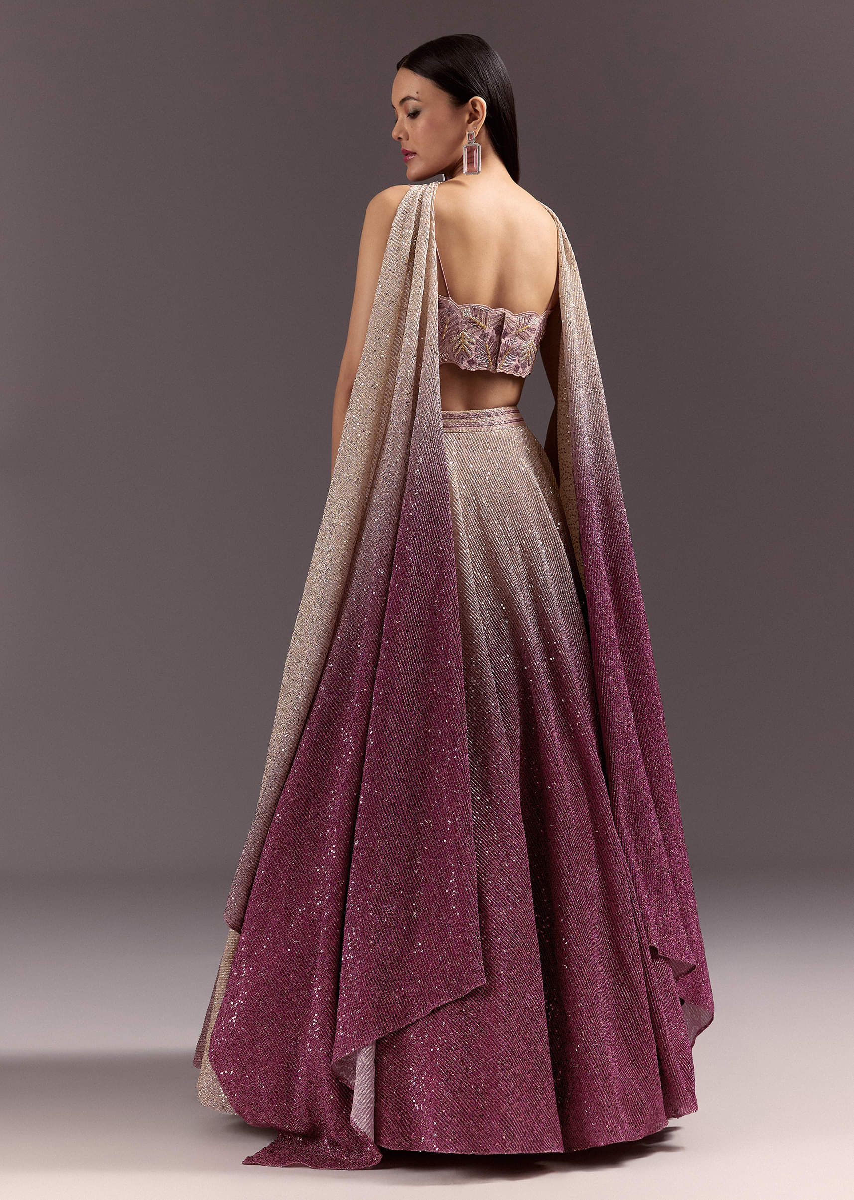 Pink Ombre Lehenga Dupatta Set With Heavily Worked Blouse