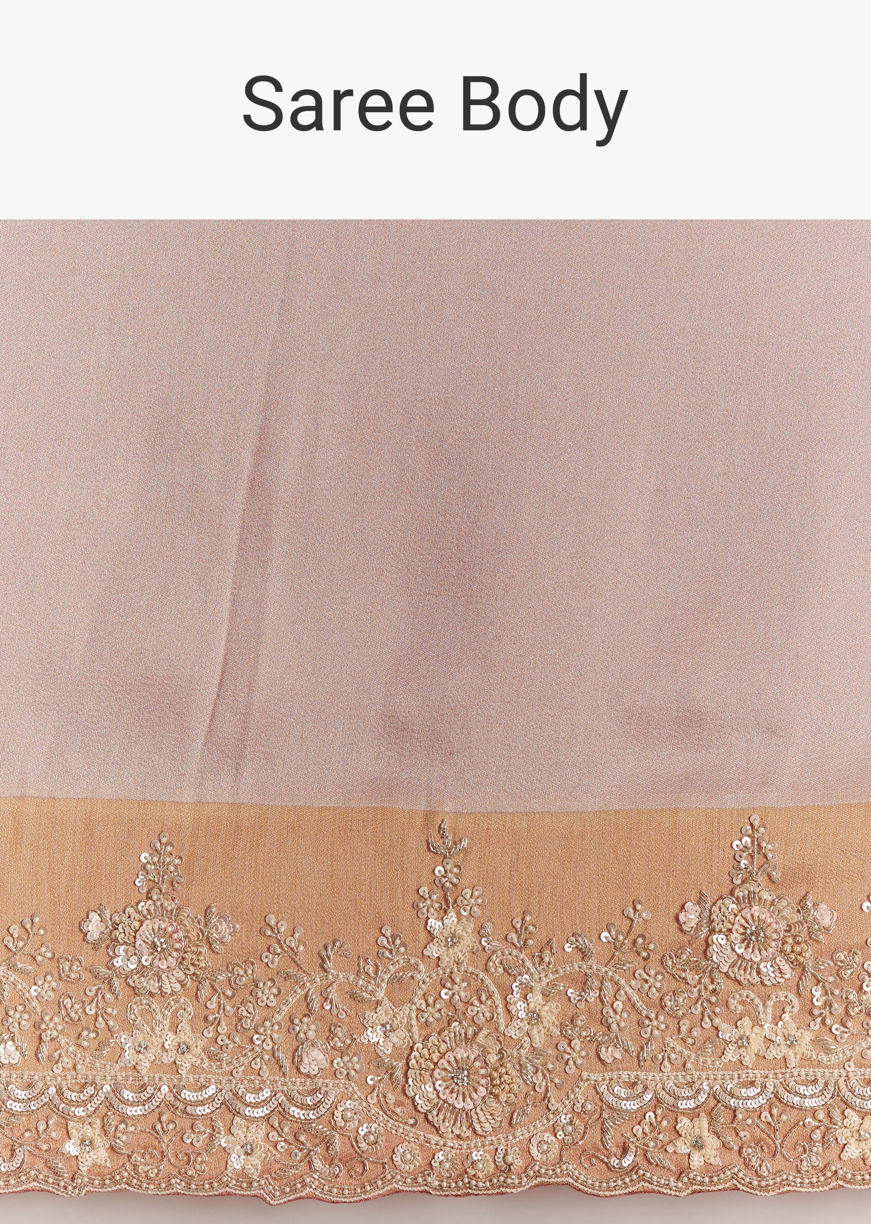 Pink Peach Kora Silk Saree With Zardosi Embroidery