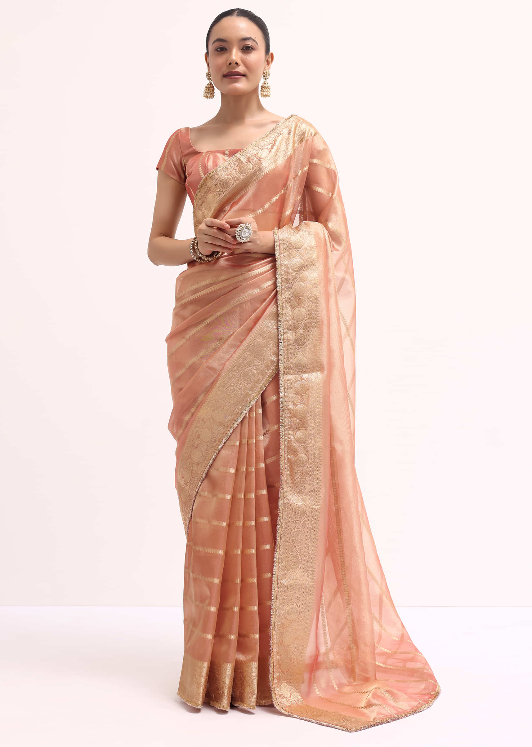 - Discover the allure of our pinkish gold saree designed for weddings and festive events.