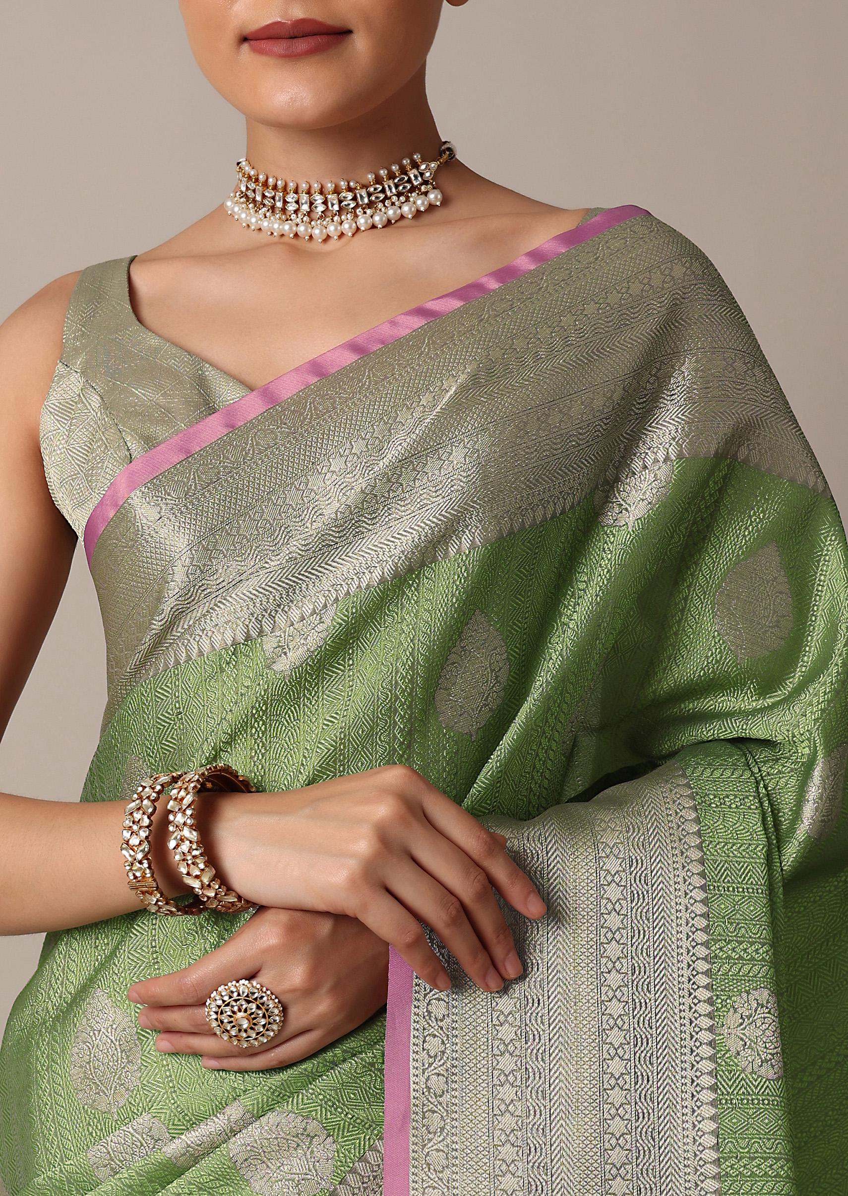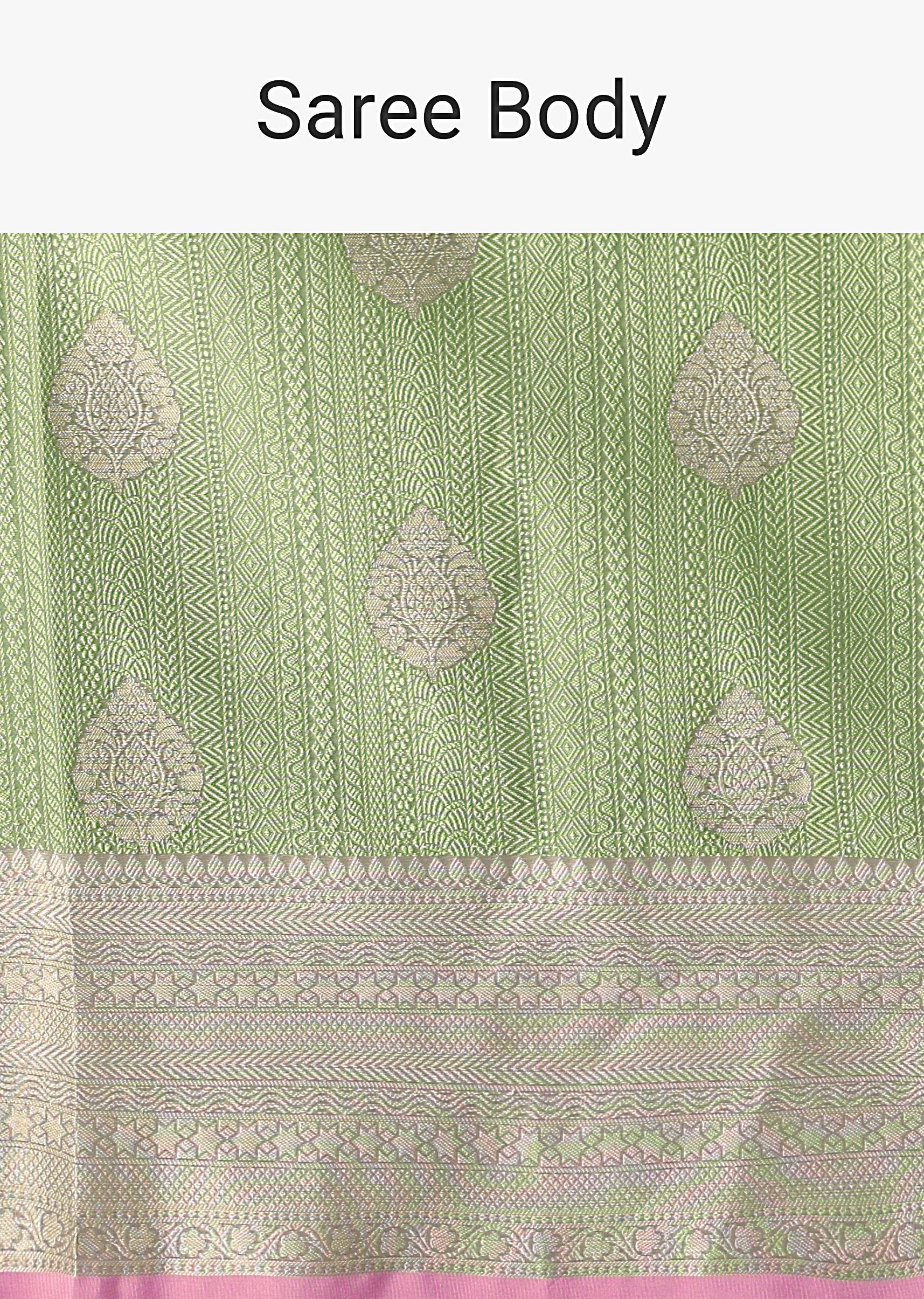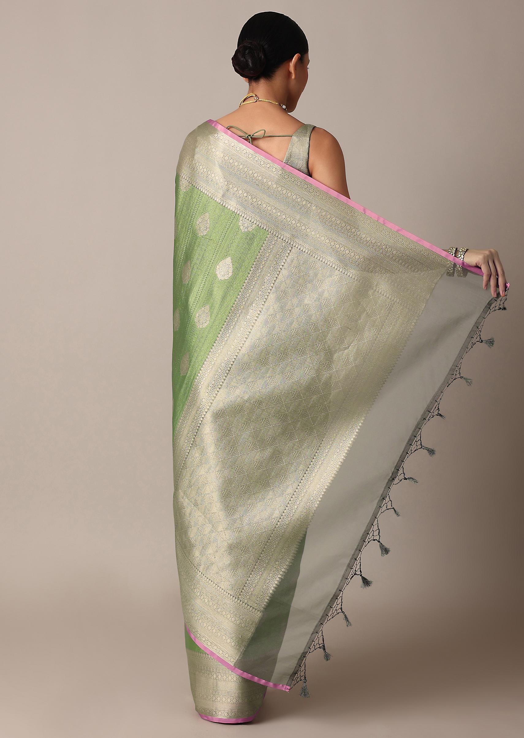 Pista Green Banarasi Tunchui Silk Saree With Woven Motifs And Unstitched Blouse Piece