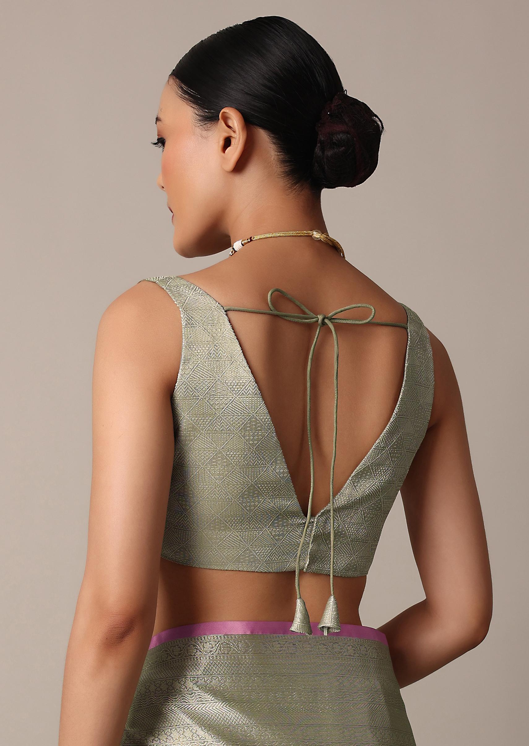 - Detailed with a tassel pallu and woven artistry this Banarasi tanchui silk drape is paired with an unstitched blouse piece.