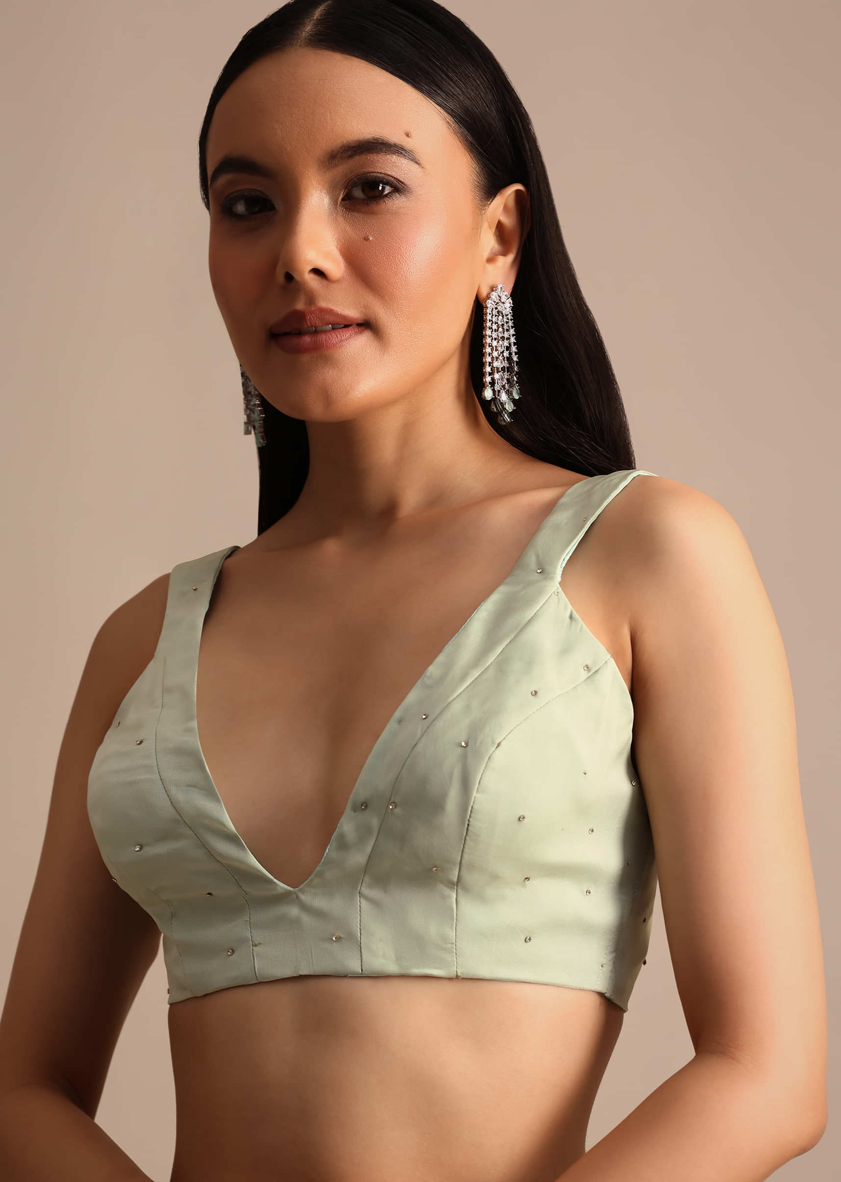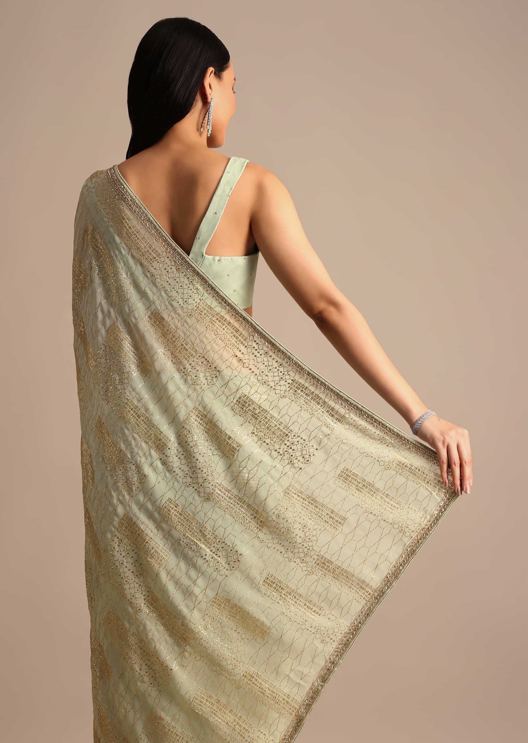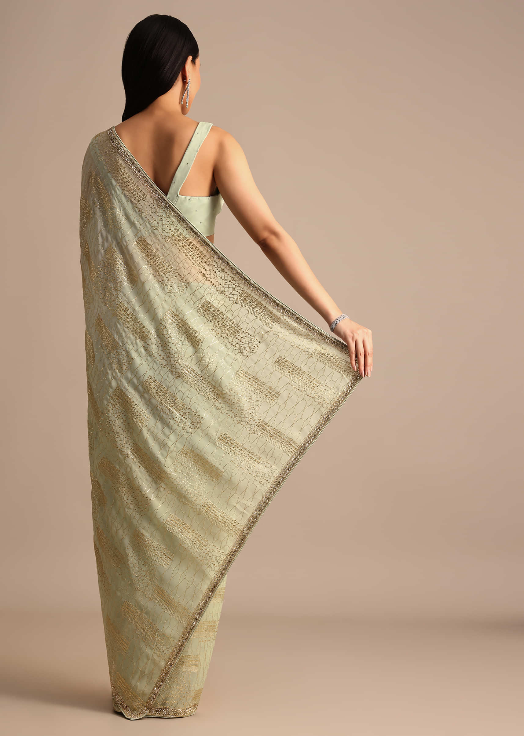 Pista Green Embroidered Georgette Saree With Unstitched Blouse