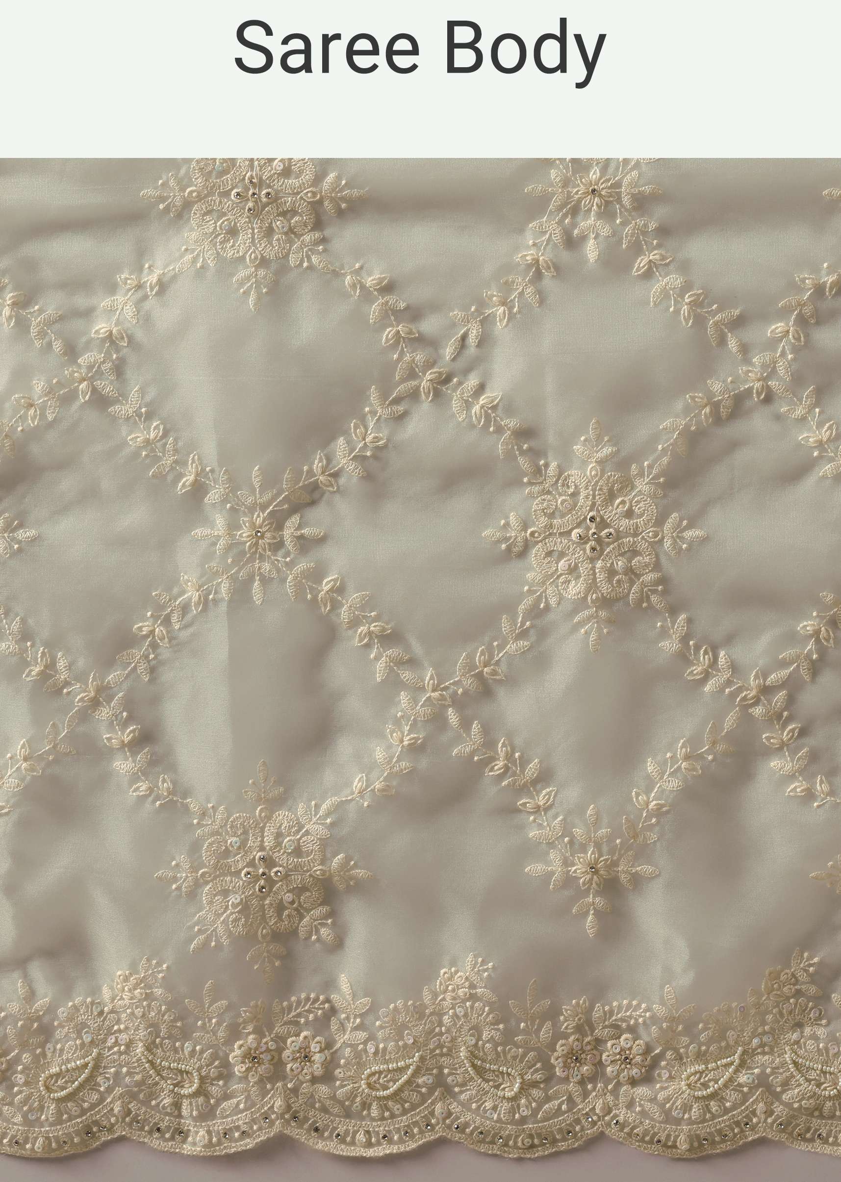 - Detailed with all over floral jaal motifs it is further accentuated with sparkly cutdana beaded border.