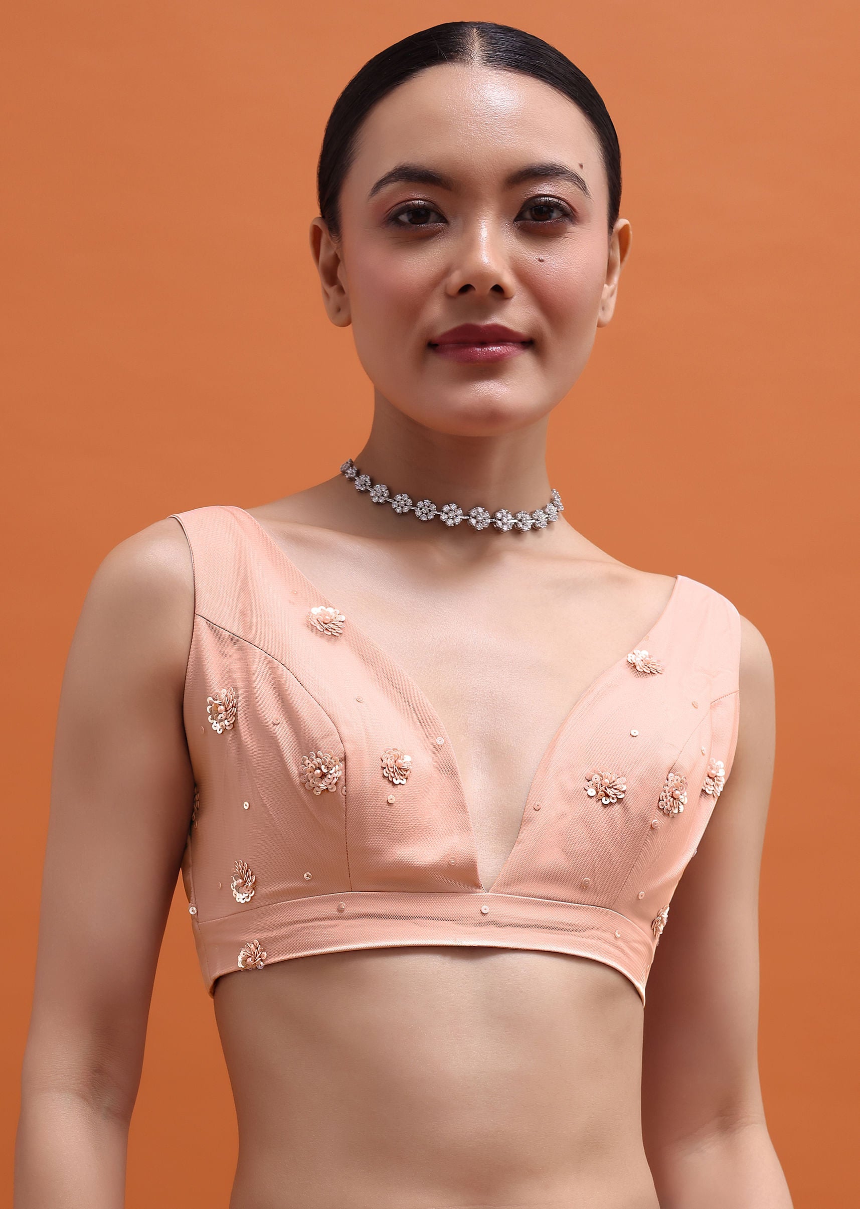 - Crafted from a net base this saree features exquisite sequins and cutdana embroidery.