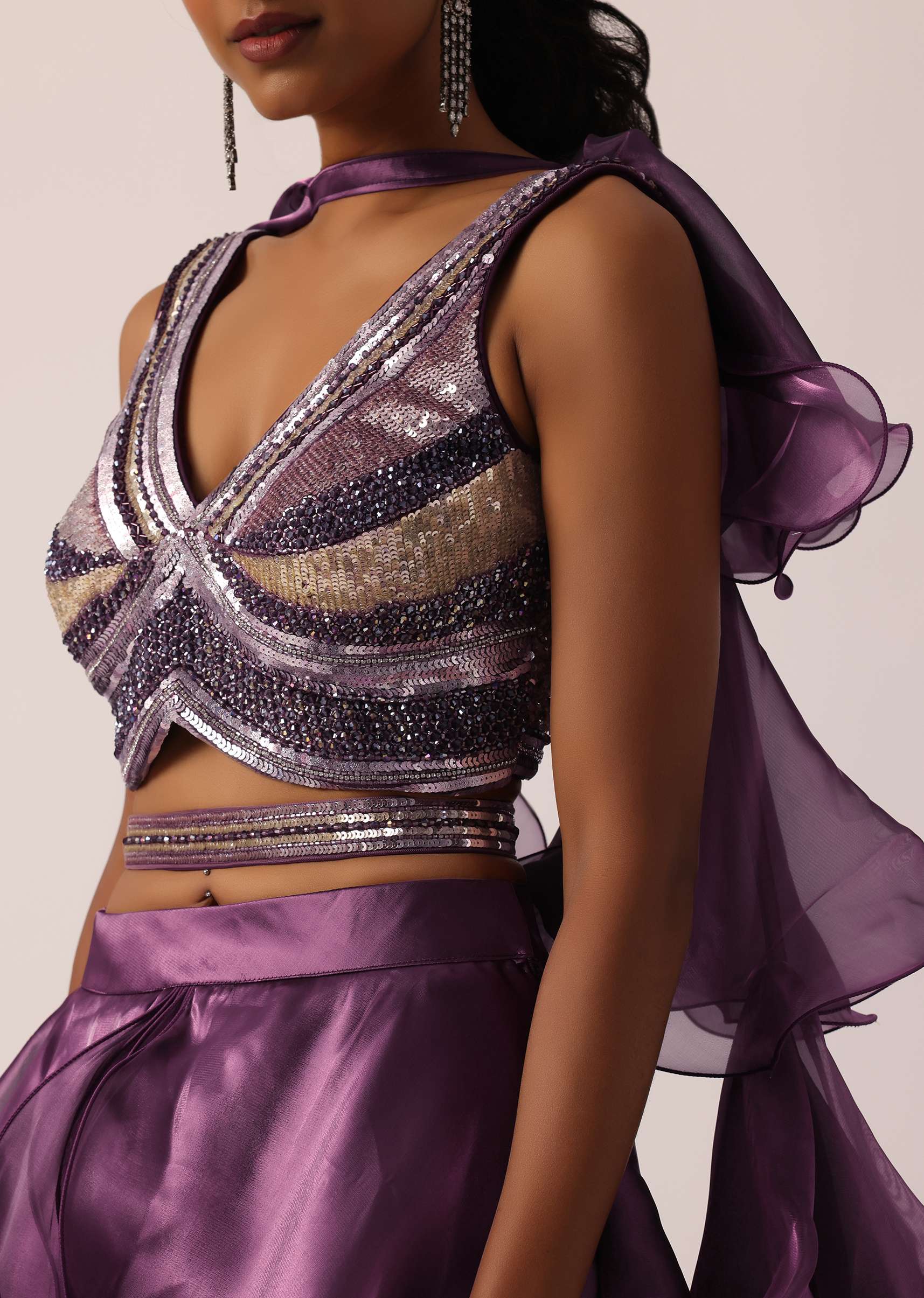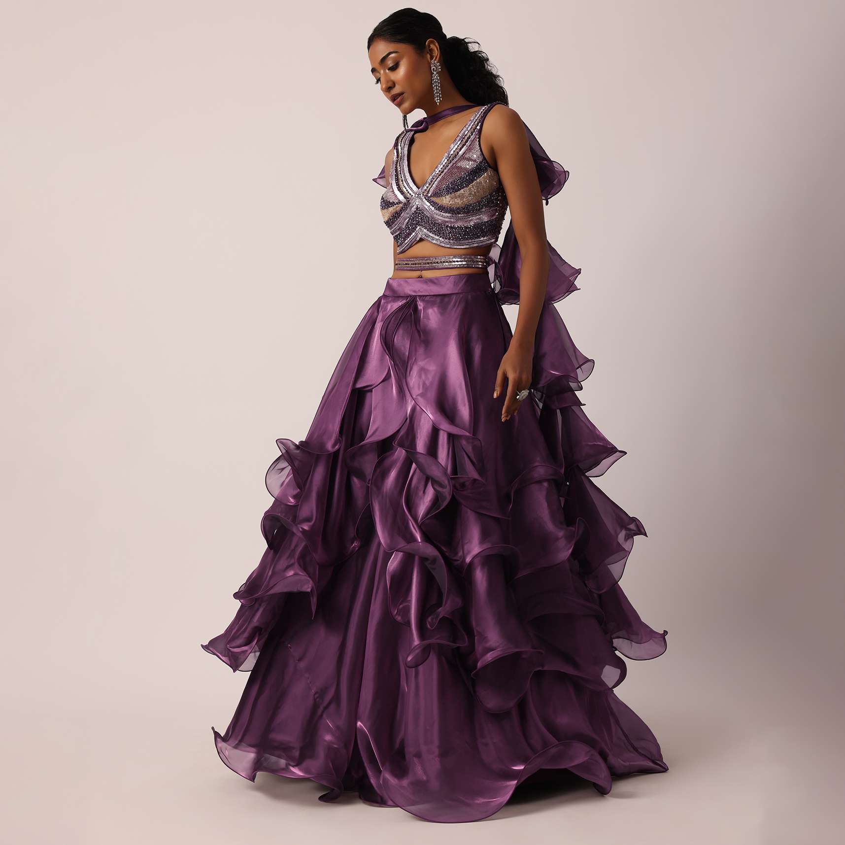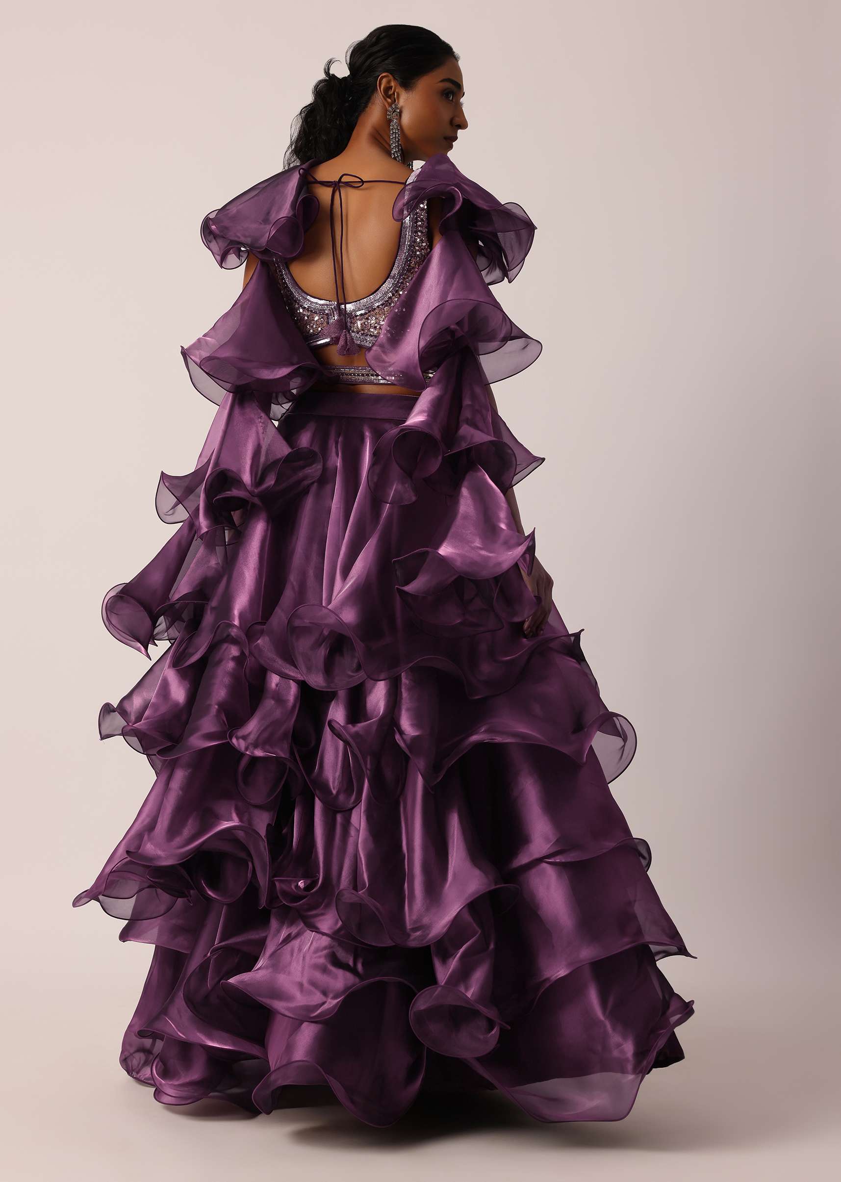 Purple Layered Ruffle Lehenga Set With Sequin Work